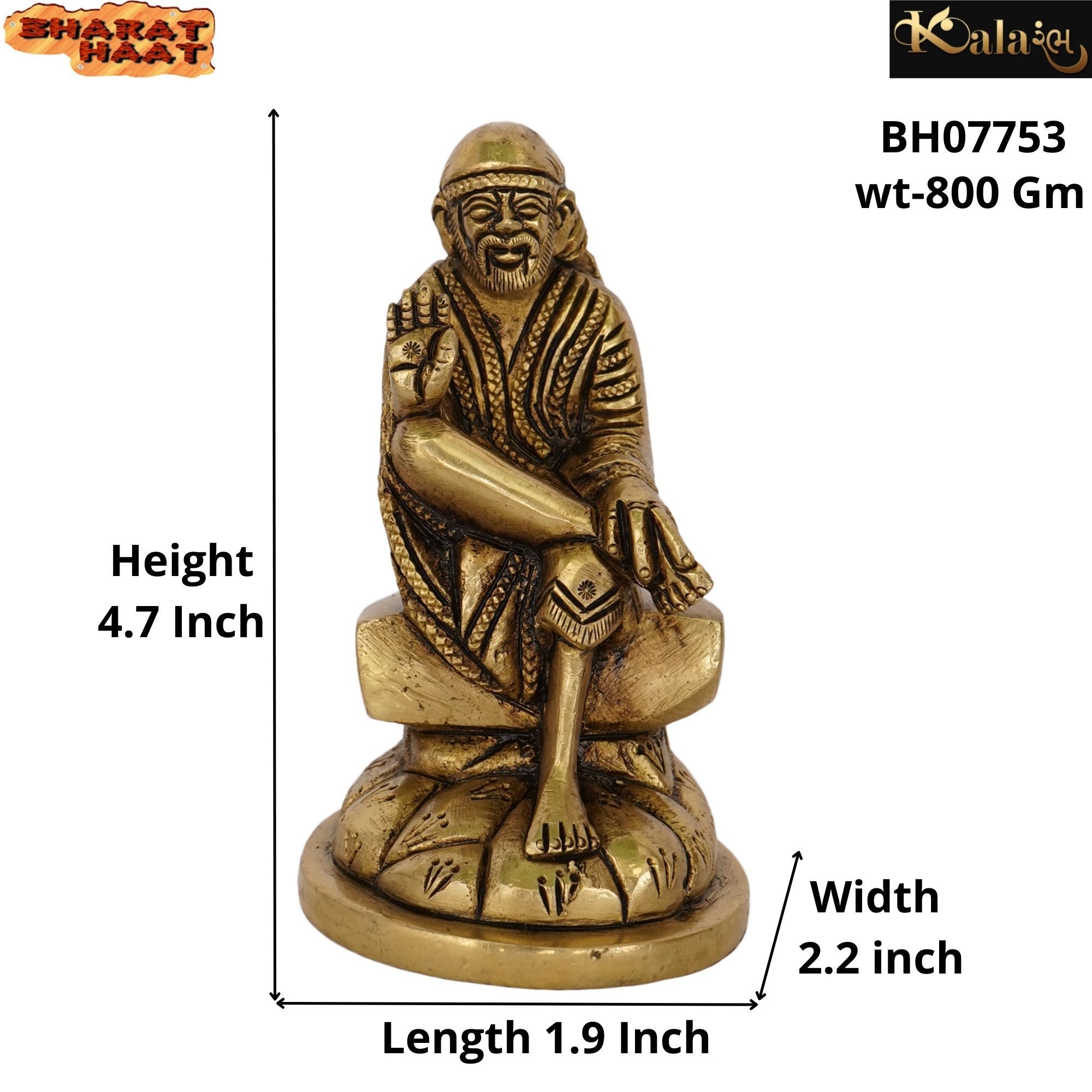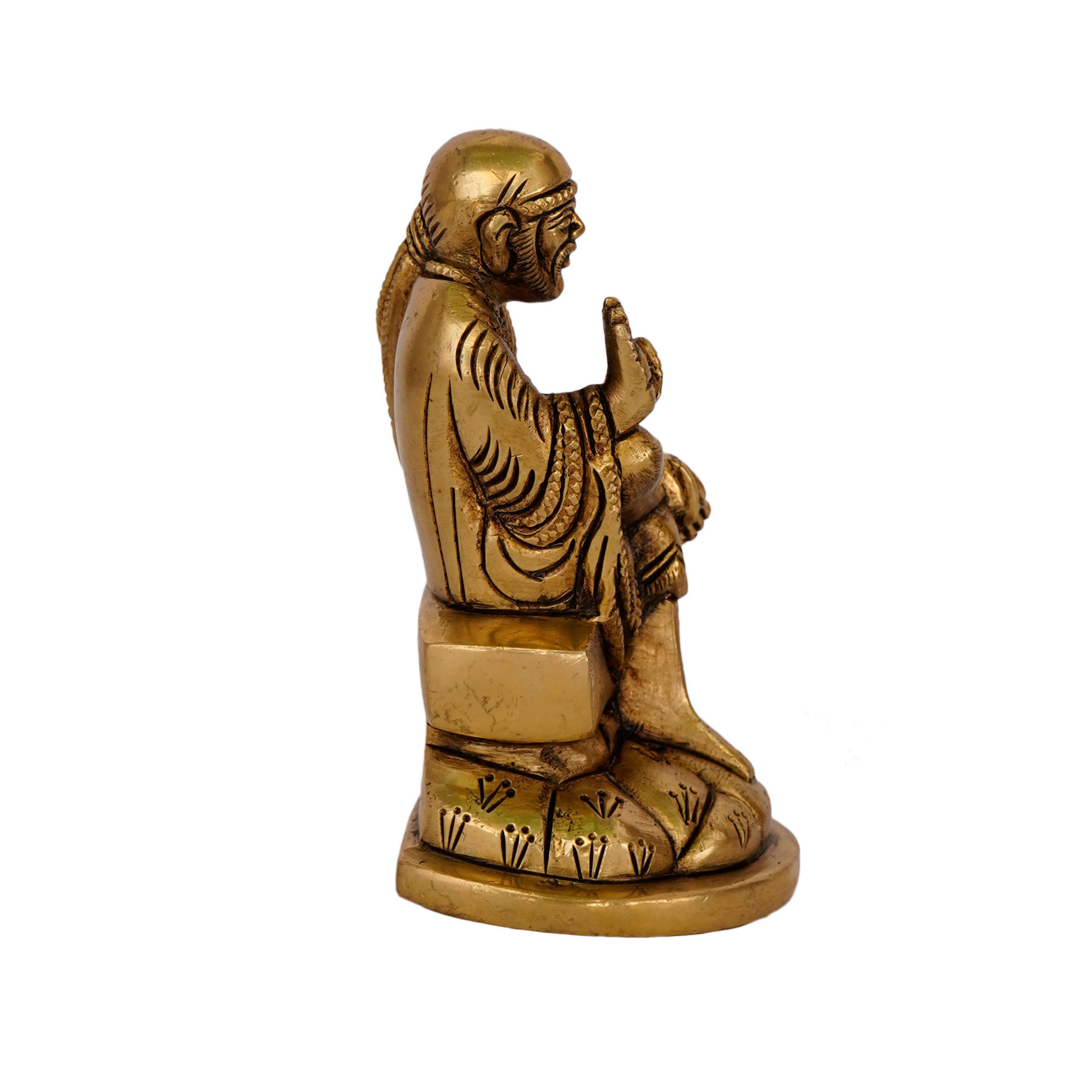 Elegant Brass Sai Baba statue, 1.9 x 2.2 x 4.7 inches, 800g – a handcrafted décor piece symbolizing devotion, peace, and spiritual guidance.