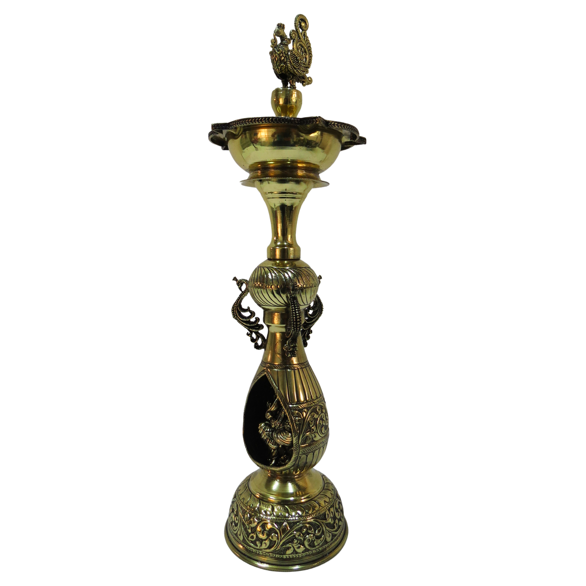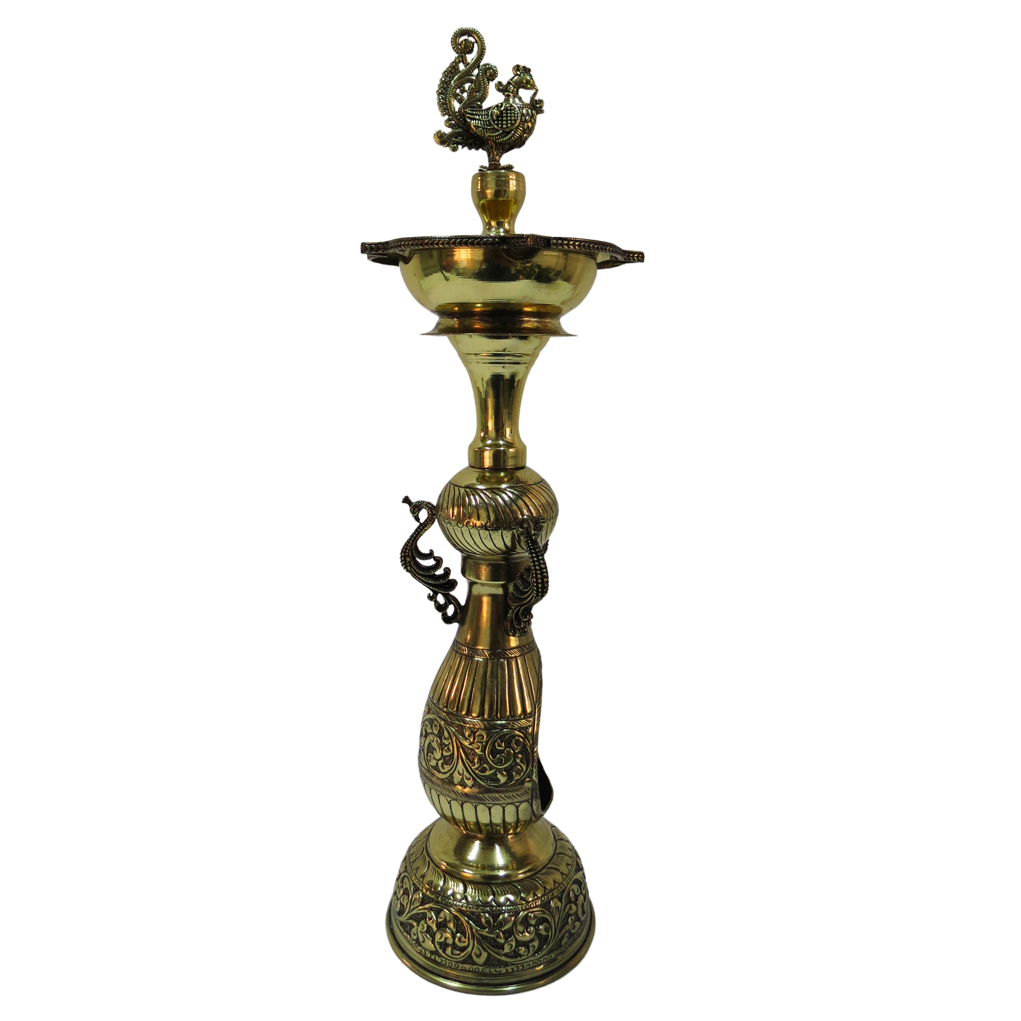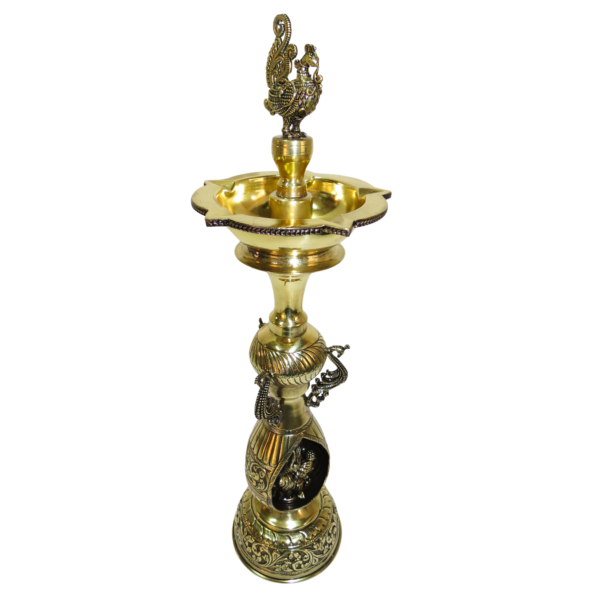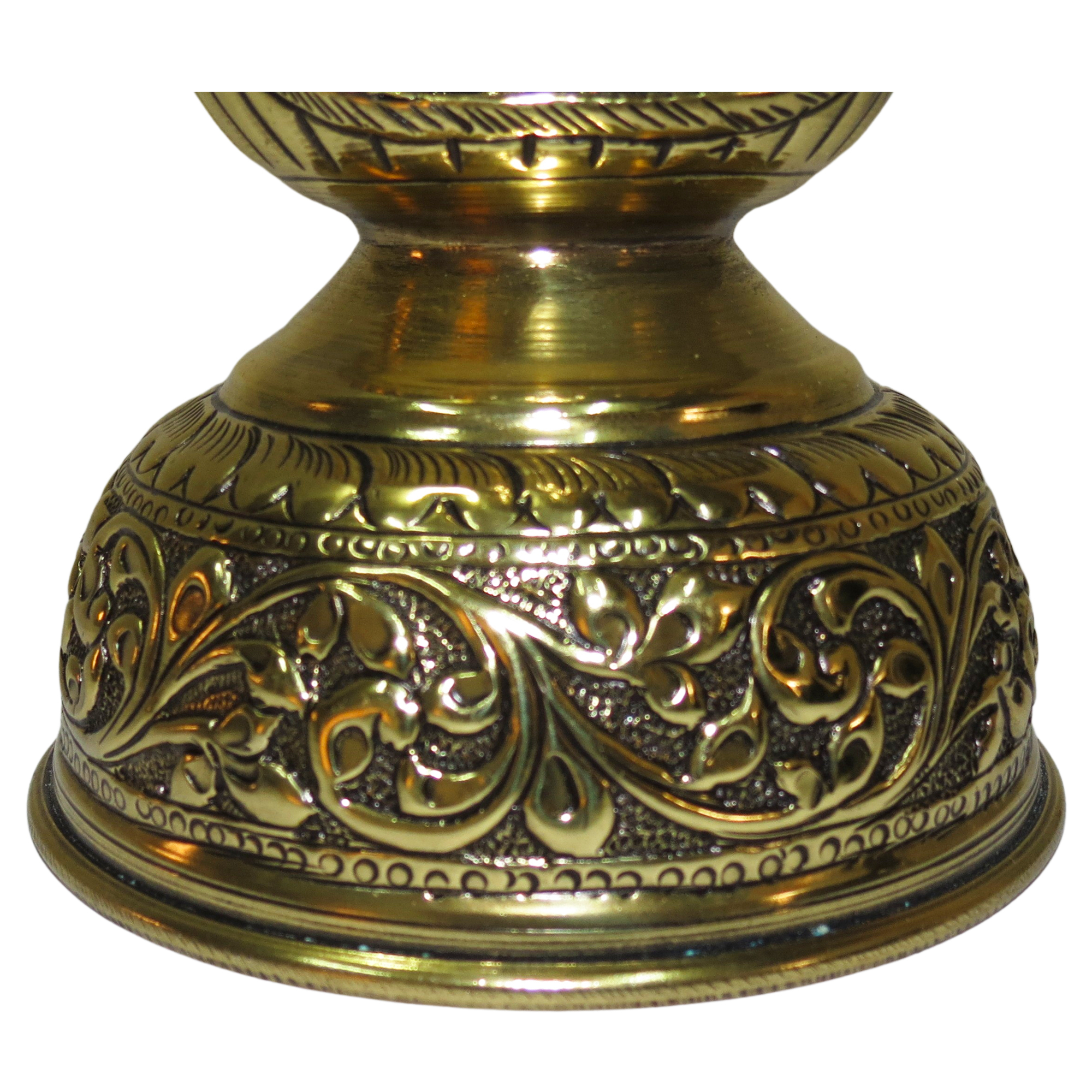 Its sturdy Samai design makes it perfect for lighting multiple wicks during prayers or festivals. The rich golden sheen and traditional form make it an elegant décor addition to your home temple or living space. This lamp radiates spiritual energy and aesthetic charm, ideal for daily rituals, festive celebrations, or gifting. Each piece is skillfully made by artisans who preserve India’s age-old brass-making traditions.