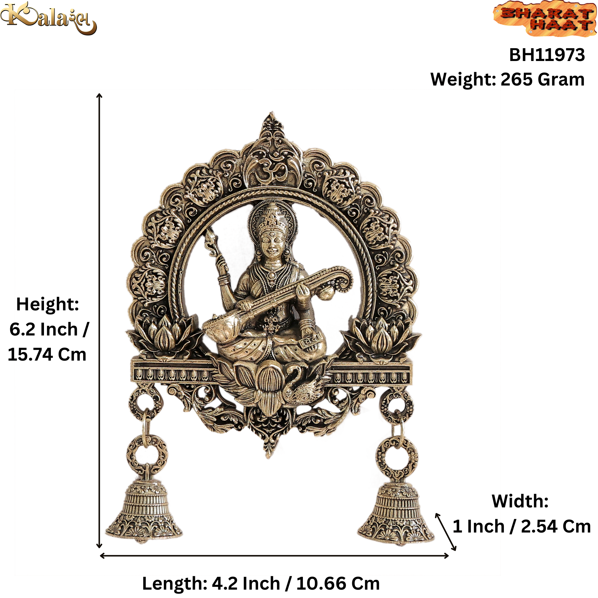 Brass Saraswati Bell Hanging for Home Temple BH11973