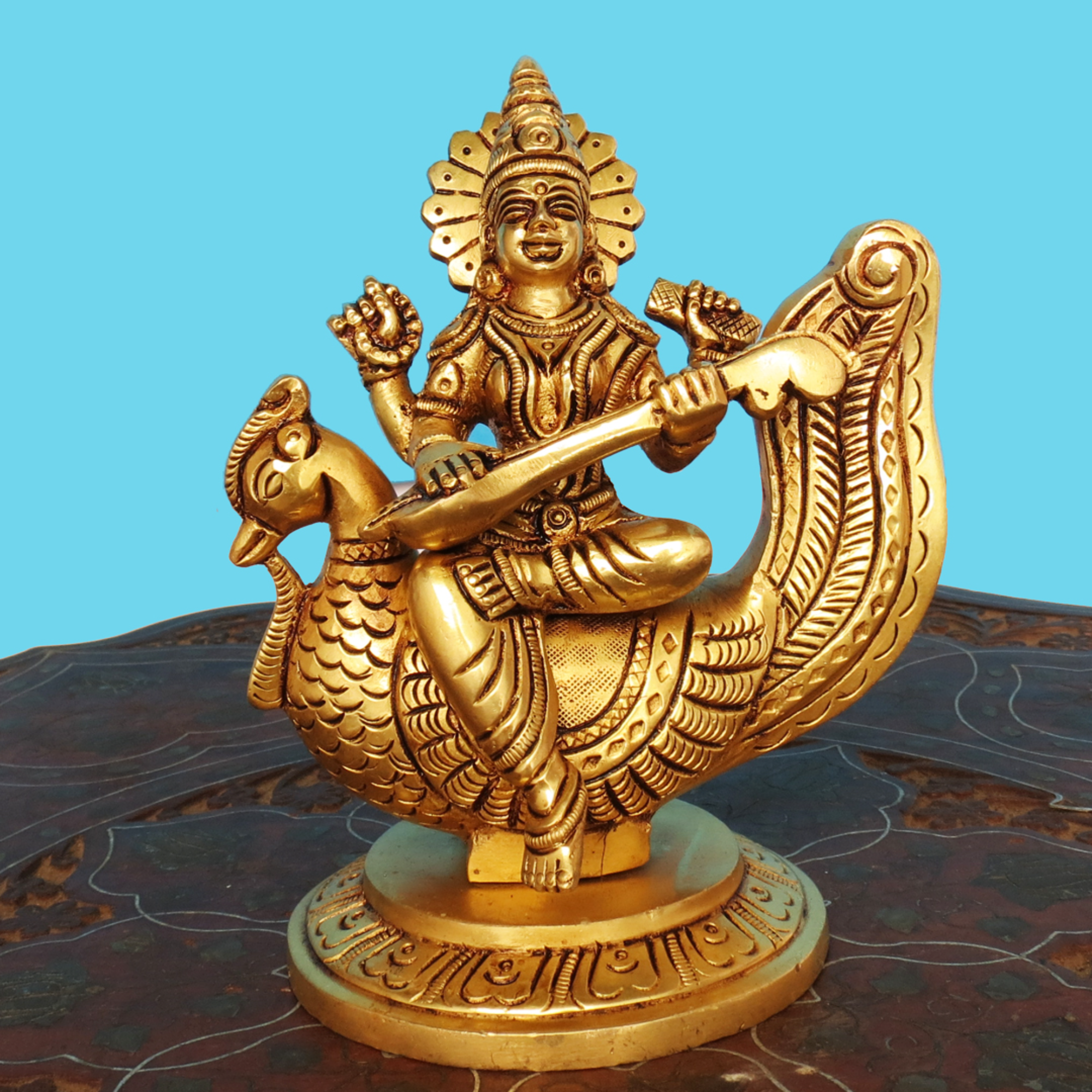 Intricate Handcrafted Detailing capturing Goddess Saraswati’s divine form