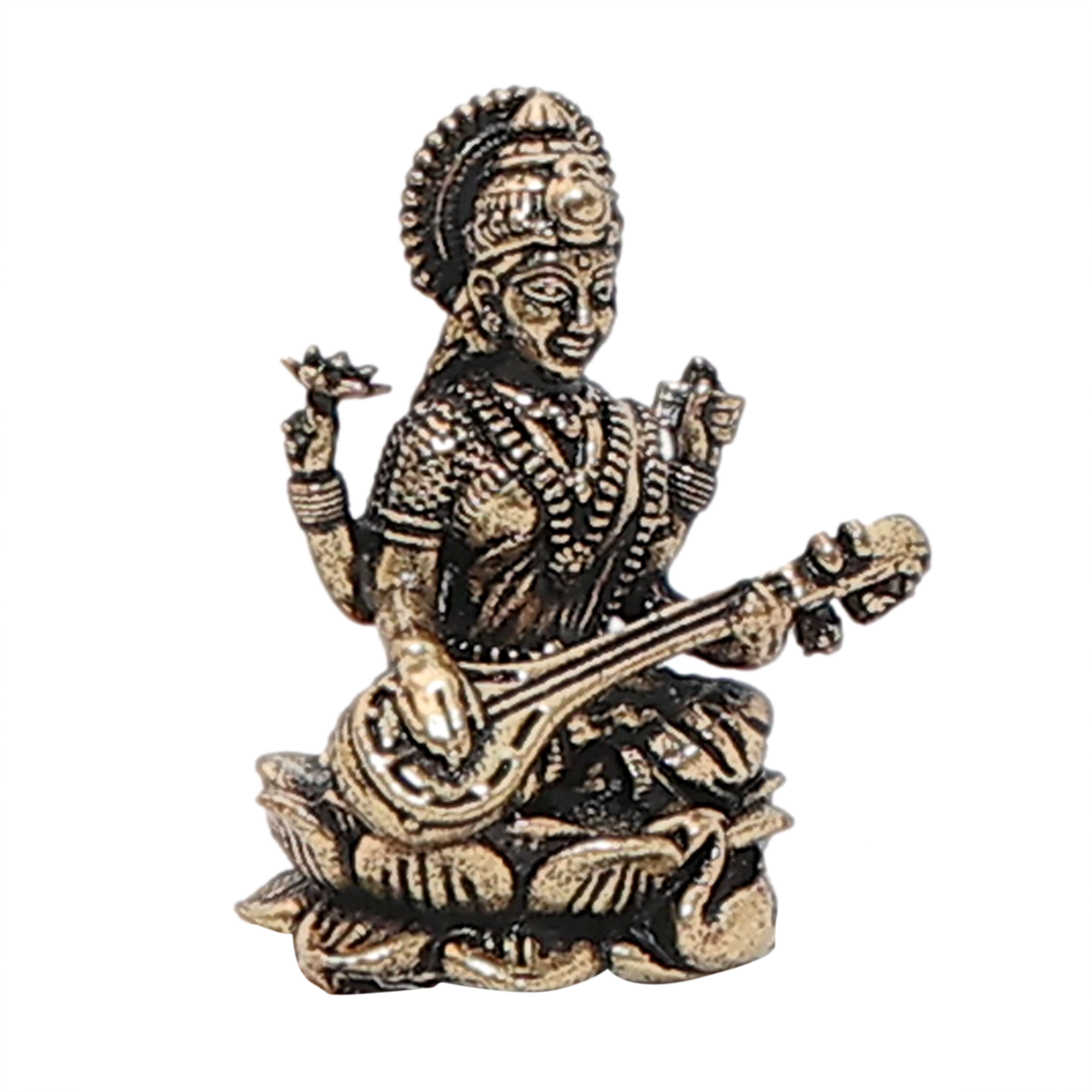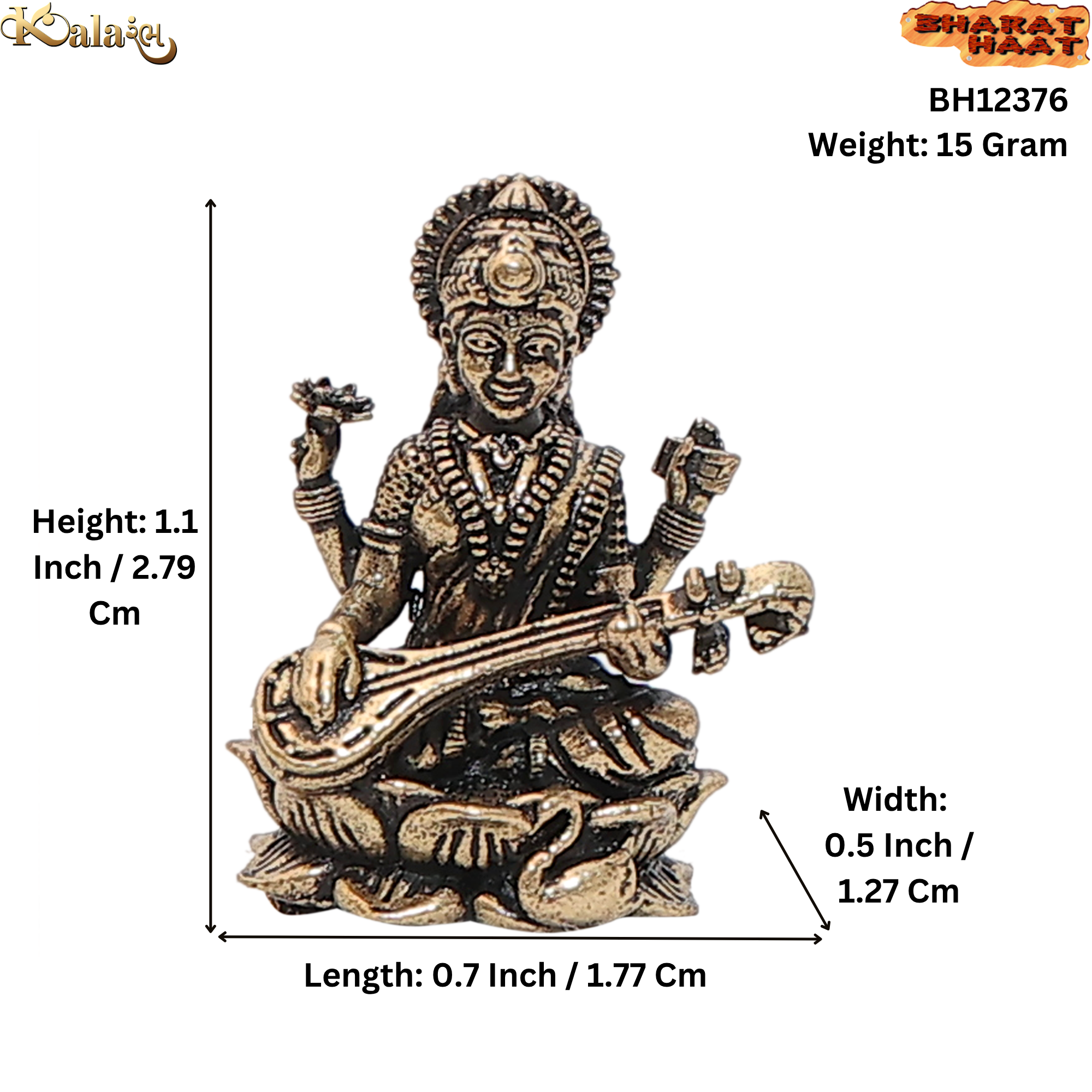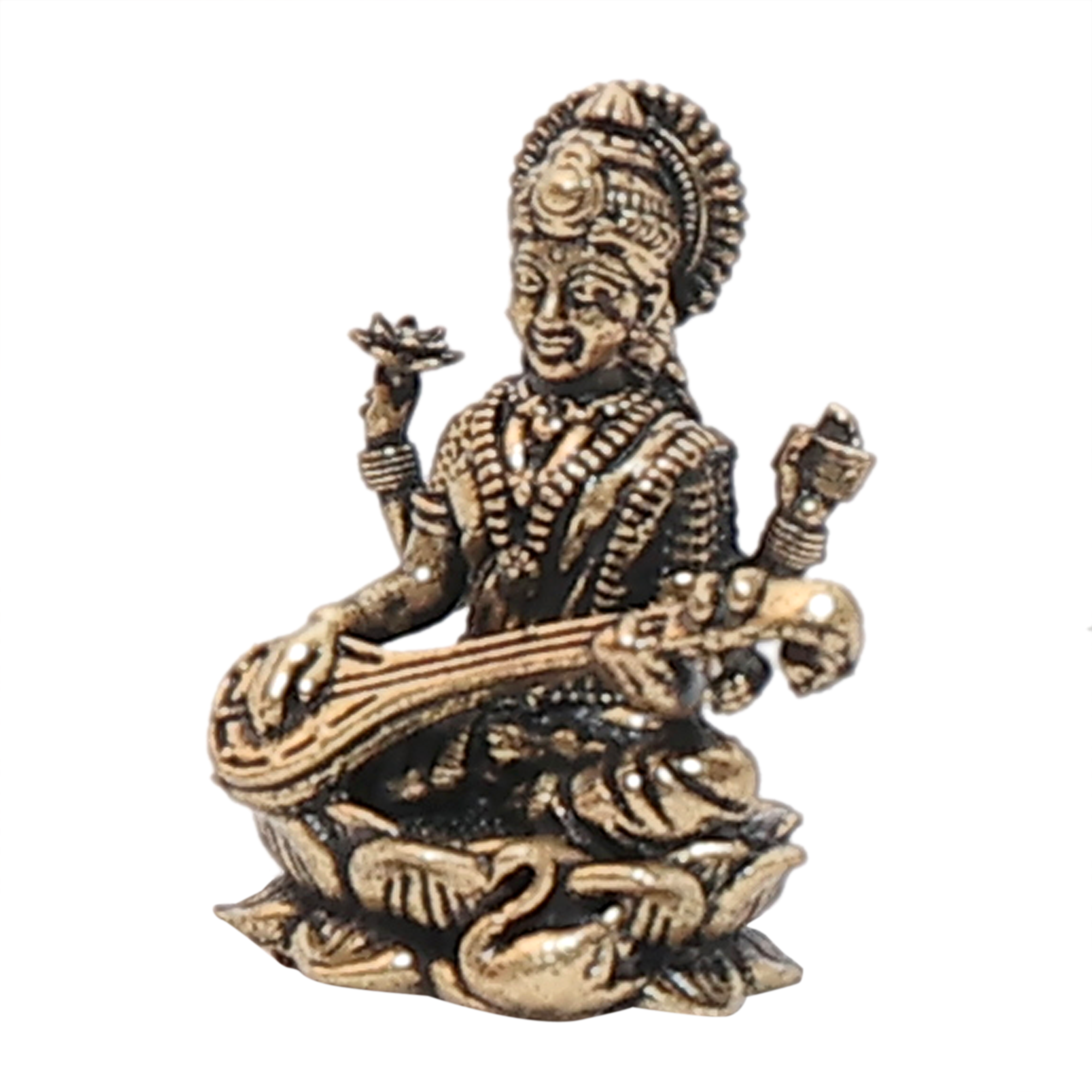 Brass Saraswati Maa Small Murti for Study Table, Home Temple & Gift, BH12376