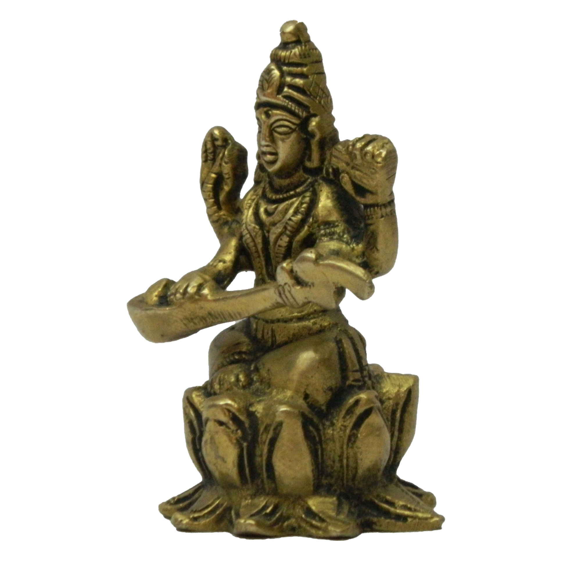 Handcrafted Brass Saraswati Sitting on Kamal idol, 3 inches tall and 172 grams, ideal for pooja, study rooms, and gifting.
