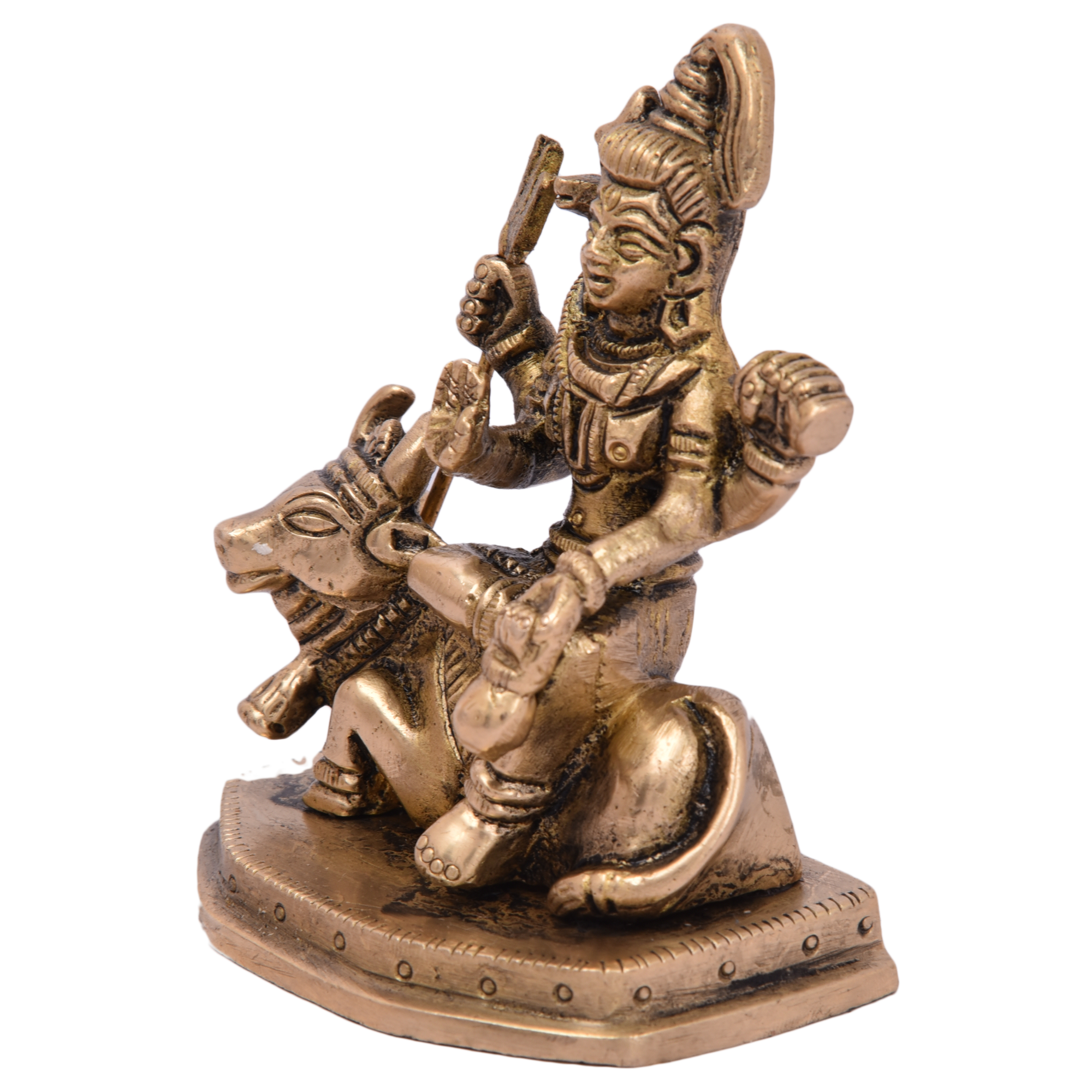 Exquisite Brass Shankar Sitting on Nandi, crafted for spiritual décor, symbolizing devotion, power, and protection.
