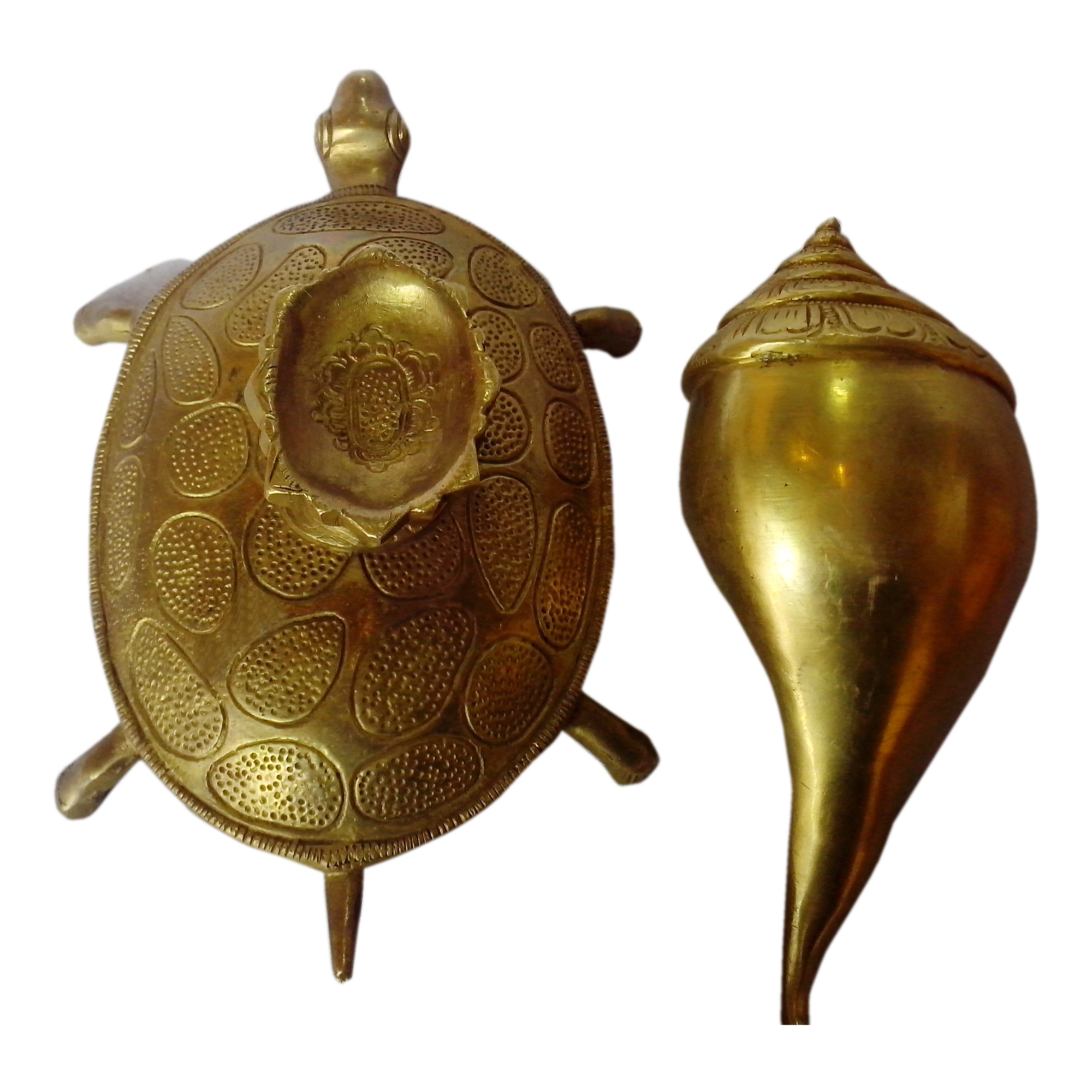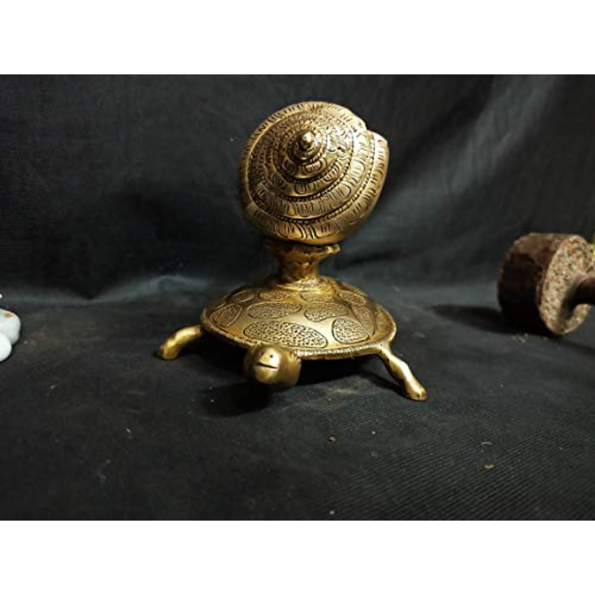 Brass Shankh On Tortoise – 5 x 7.5 x 4.8 Inch, 1.19 Kg. A beautifully handcrafted brass statue featuring a Shankh placed on a tortoise, ideal for home temples, pooja rooms, or as an auspicious decorative accent.
