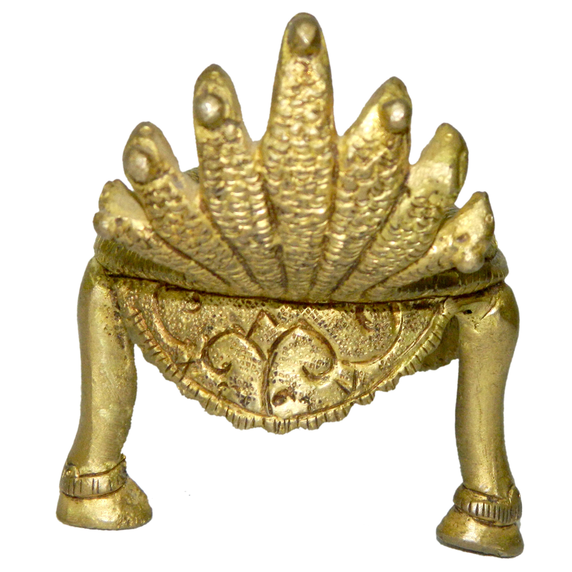 Brass Shankh Stand with Shesh Nag Mid (298g) — elegant handcrafted brass stand designed to hold a shankh, enhancing spiritual décor and pooja rituals.