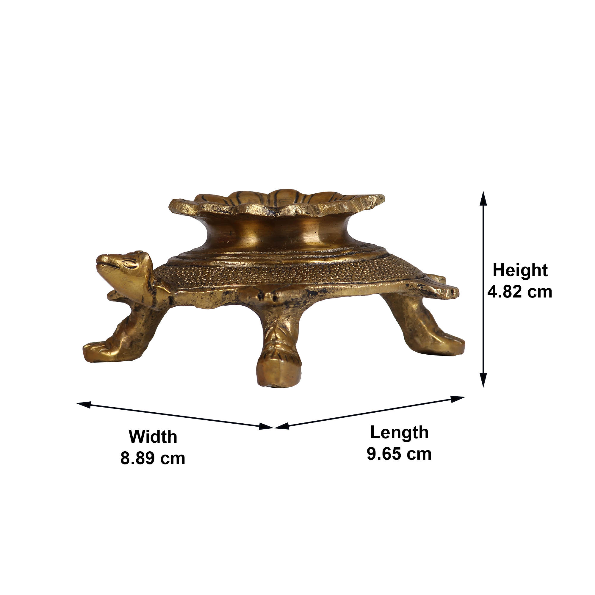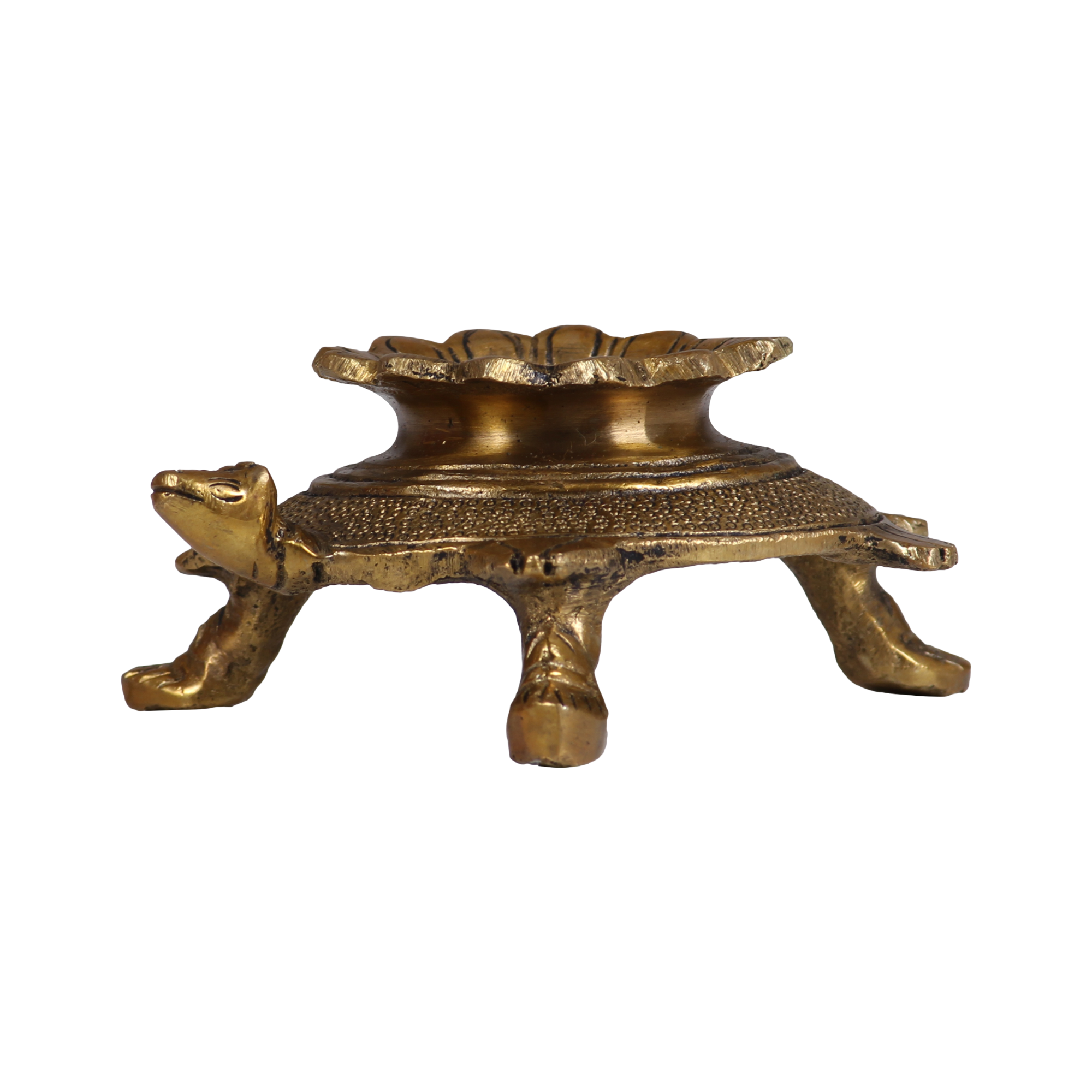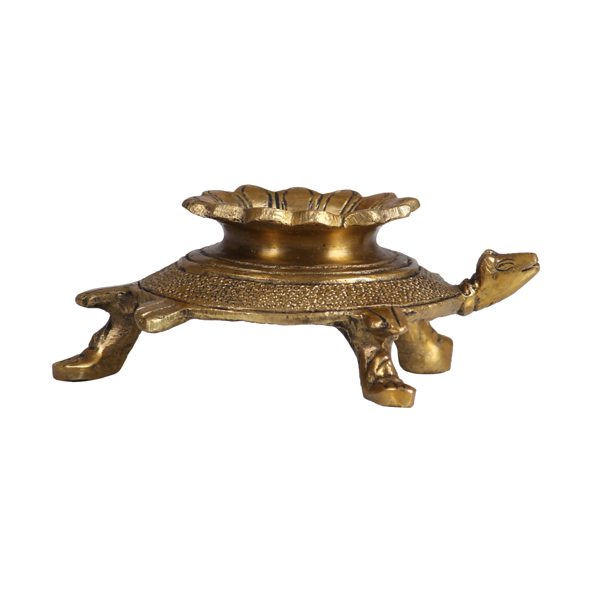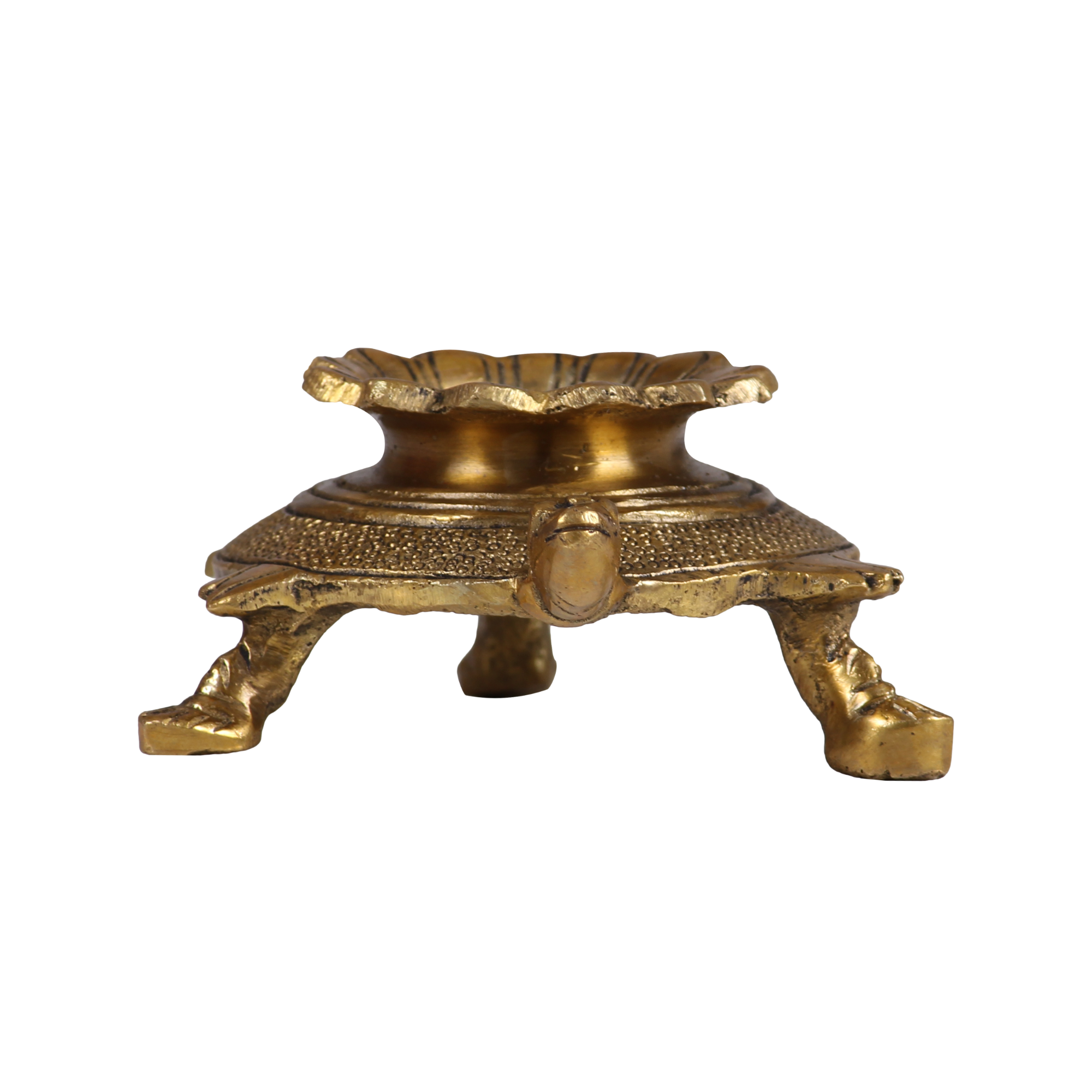 Design: Handcrafted Pure Brass Shankh Stand featuring a beautifully carved tortoise base, symbolizing stability, prosperity, and longevity