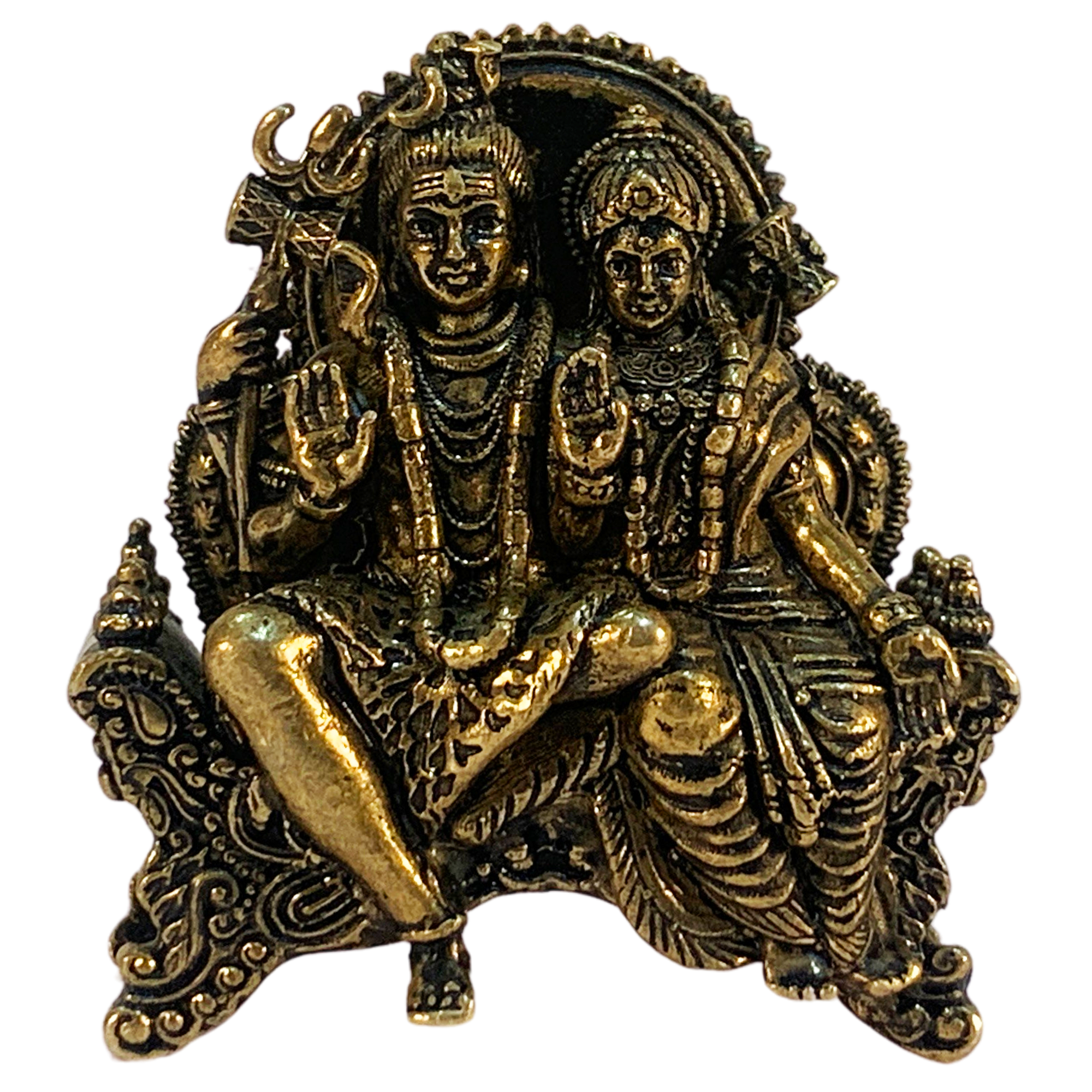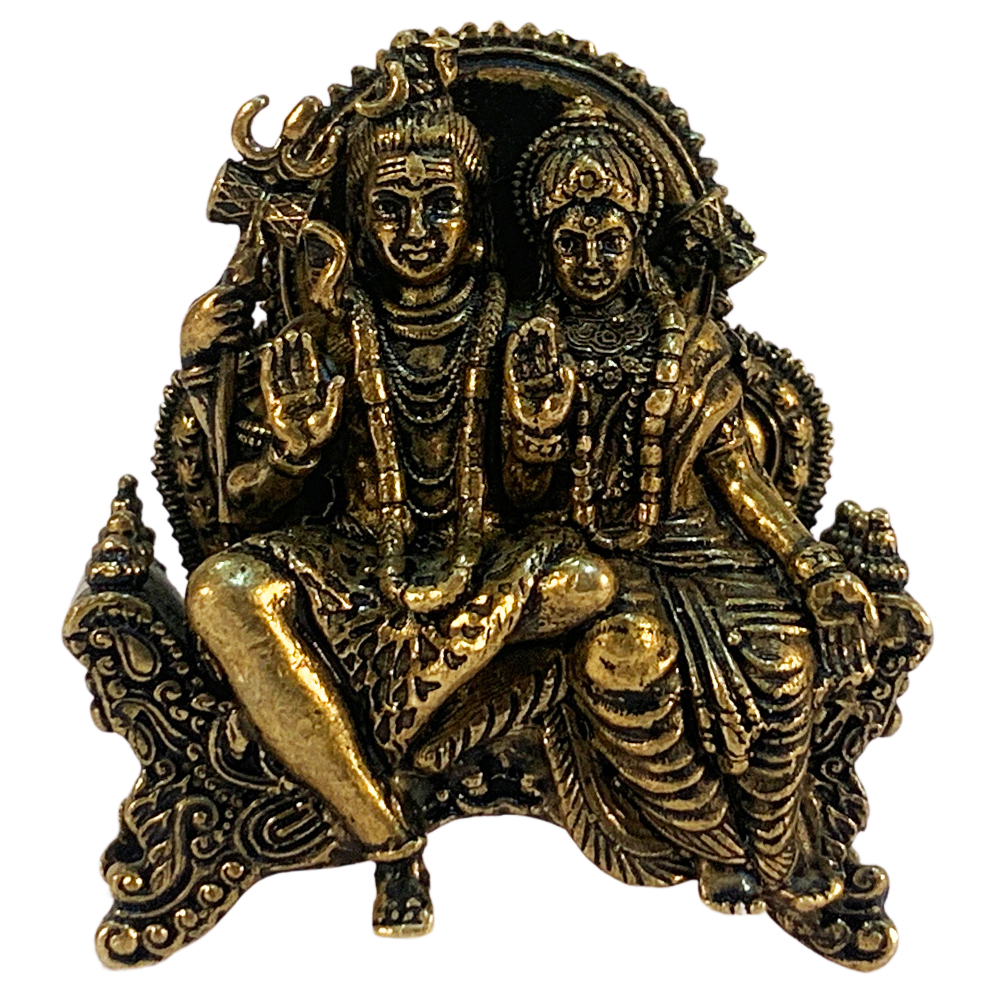 Handcrafted from brass by master artisans, this Shiva Family Figurine features intricate detailing – from Shiva's meditative poise and trident to the familial warmth – finished with a warm patina for an authentic, heirloom-like glow.