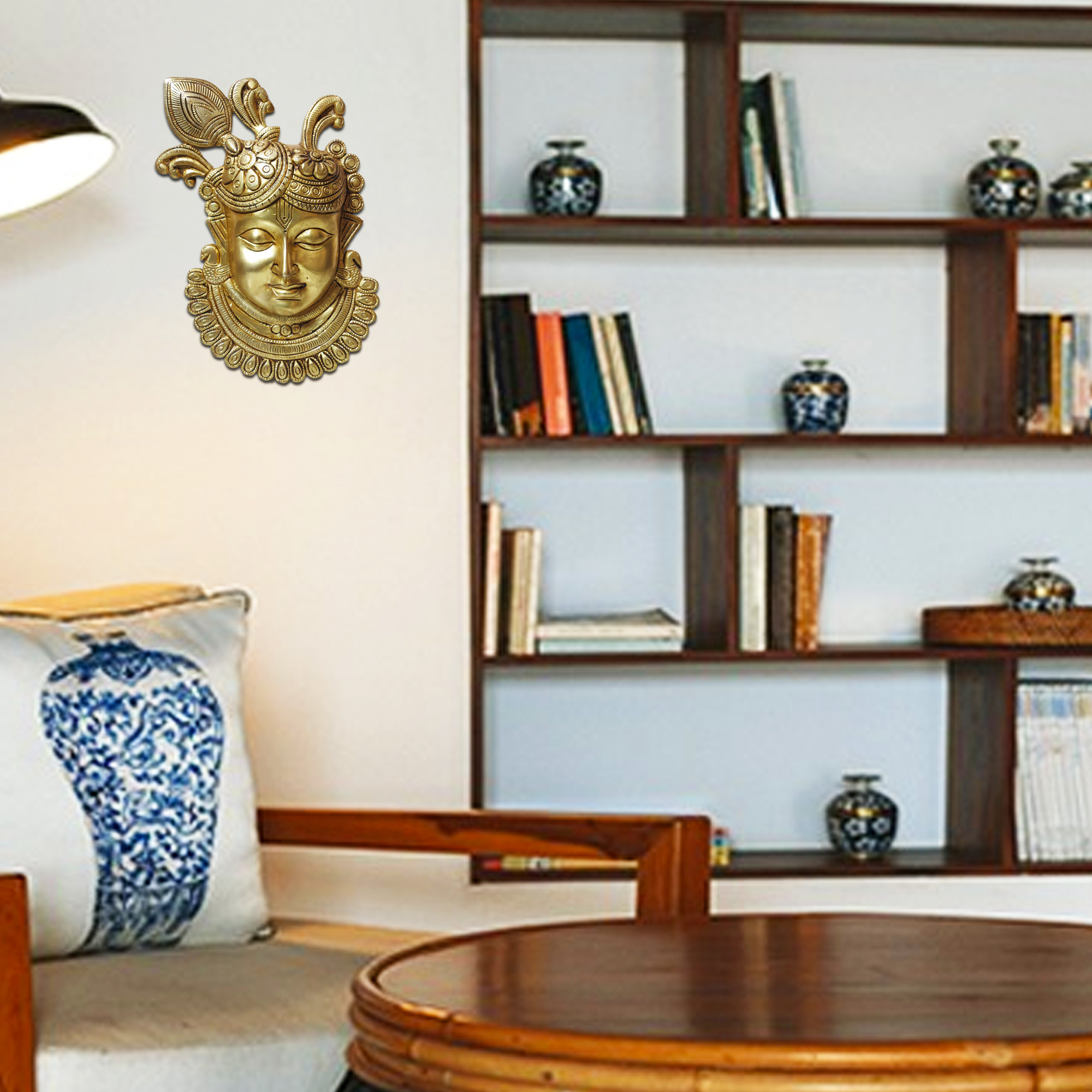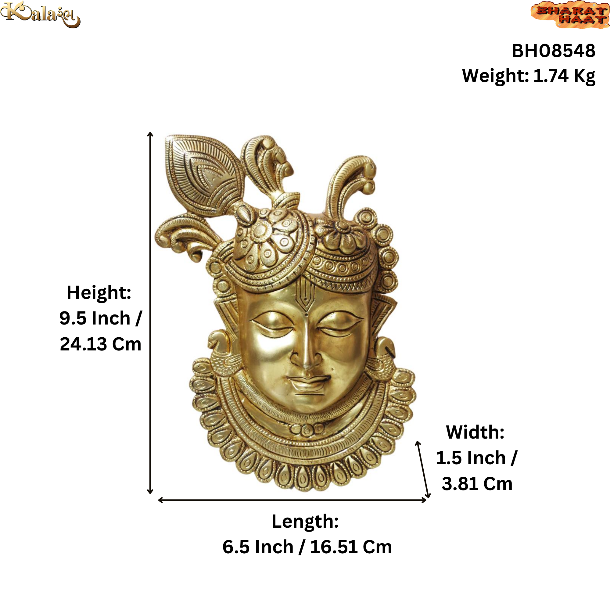 Bring divine blessings and timeless elegance to your home with this Brass Shrinathji Wall Hanging, a masterpiece of traditional Indian craftsmanship. Handcrafted from premium quality pure brass, this exquisite wall décor depicts Lord Shrinathji, a revered form of Lord Krishna worshipped for love, compassion, and prosperity.