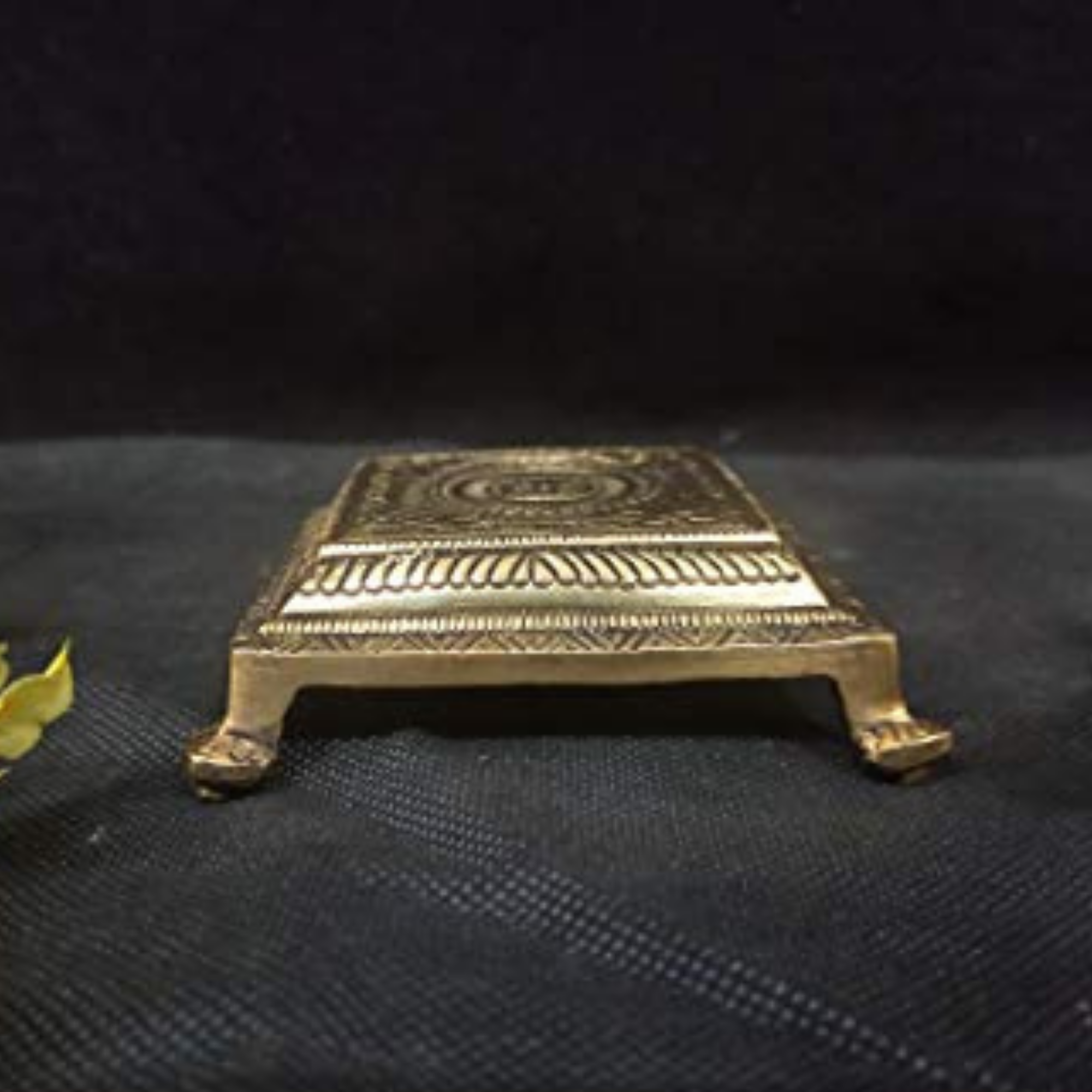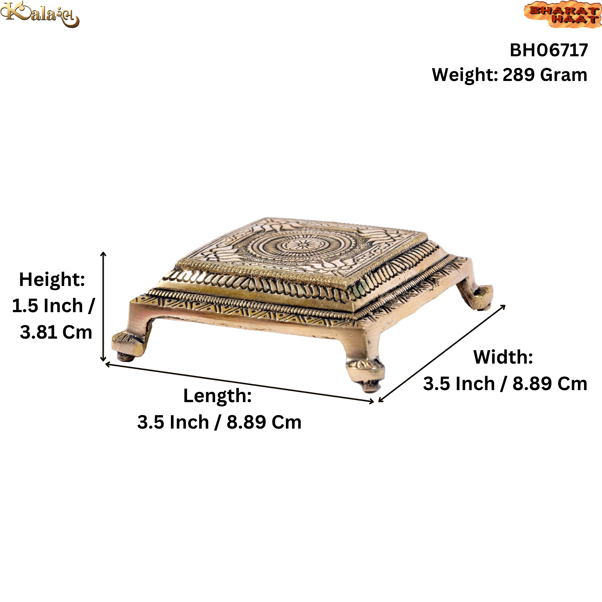 The Brass Small Bajath is a handcrafted pooja chowki designed to hold idols or lamps during rituals. Measuring 3.5 x 3.5 x 1.5 Inch and weighing 289 Gram, it brings a divine and elegant touch to your spiritual setup.