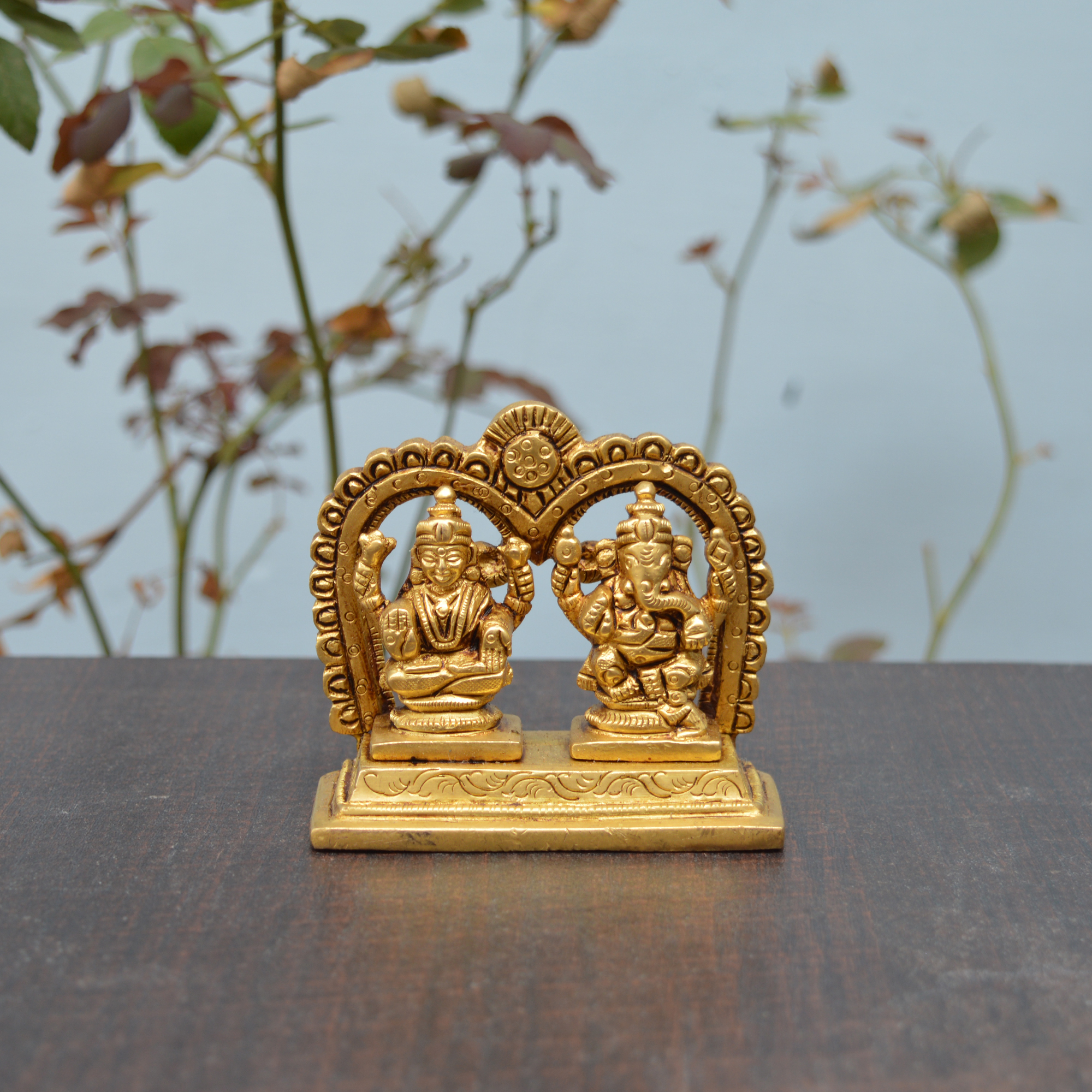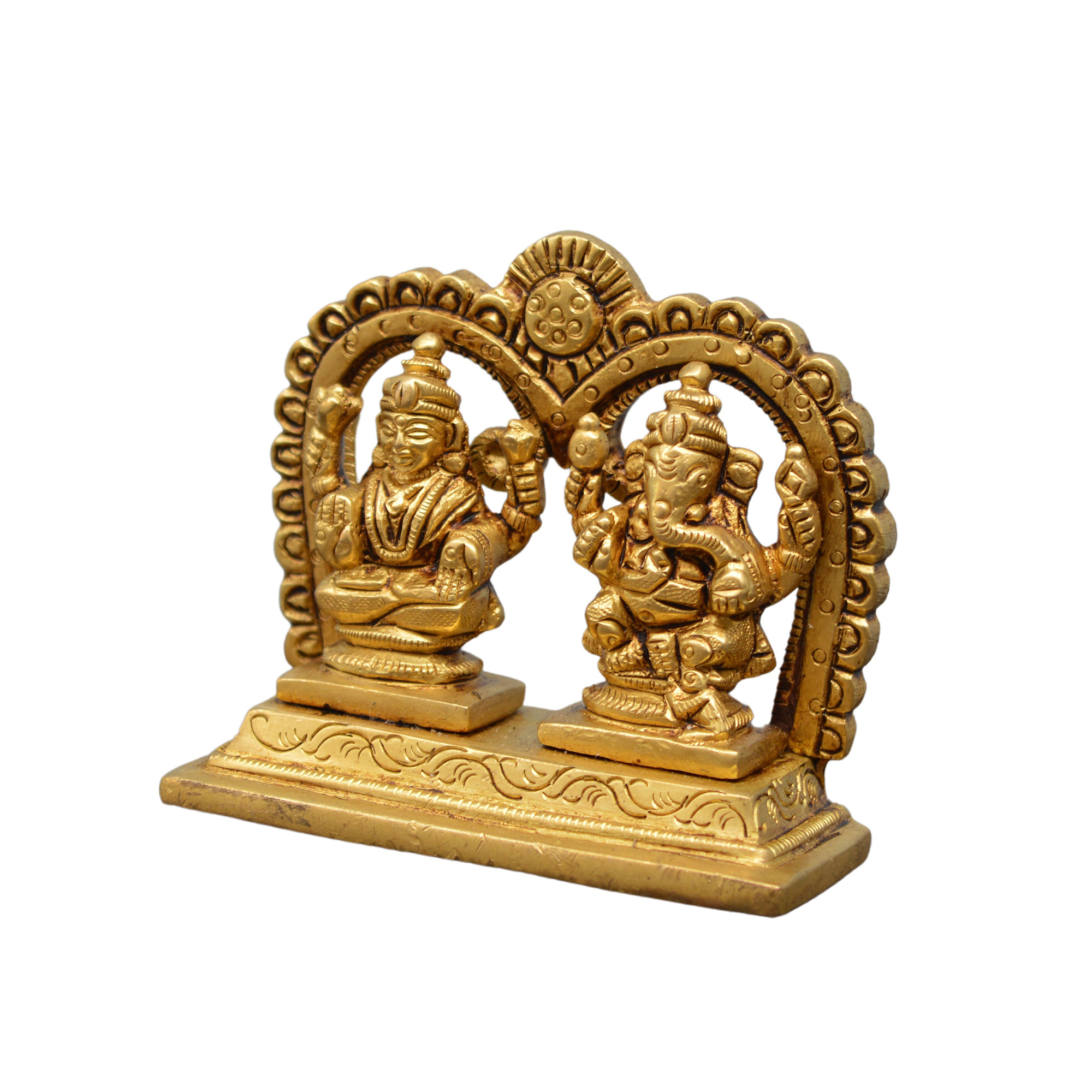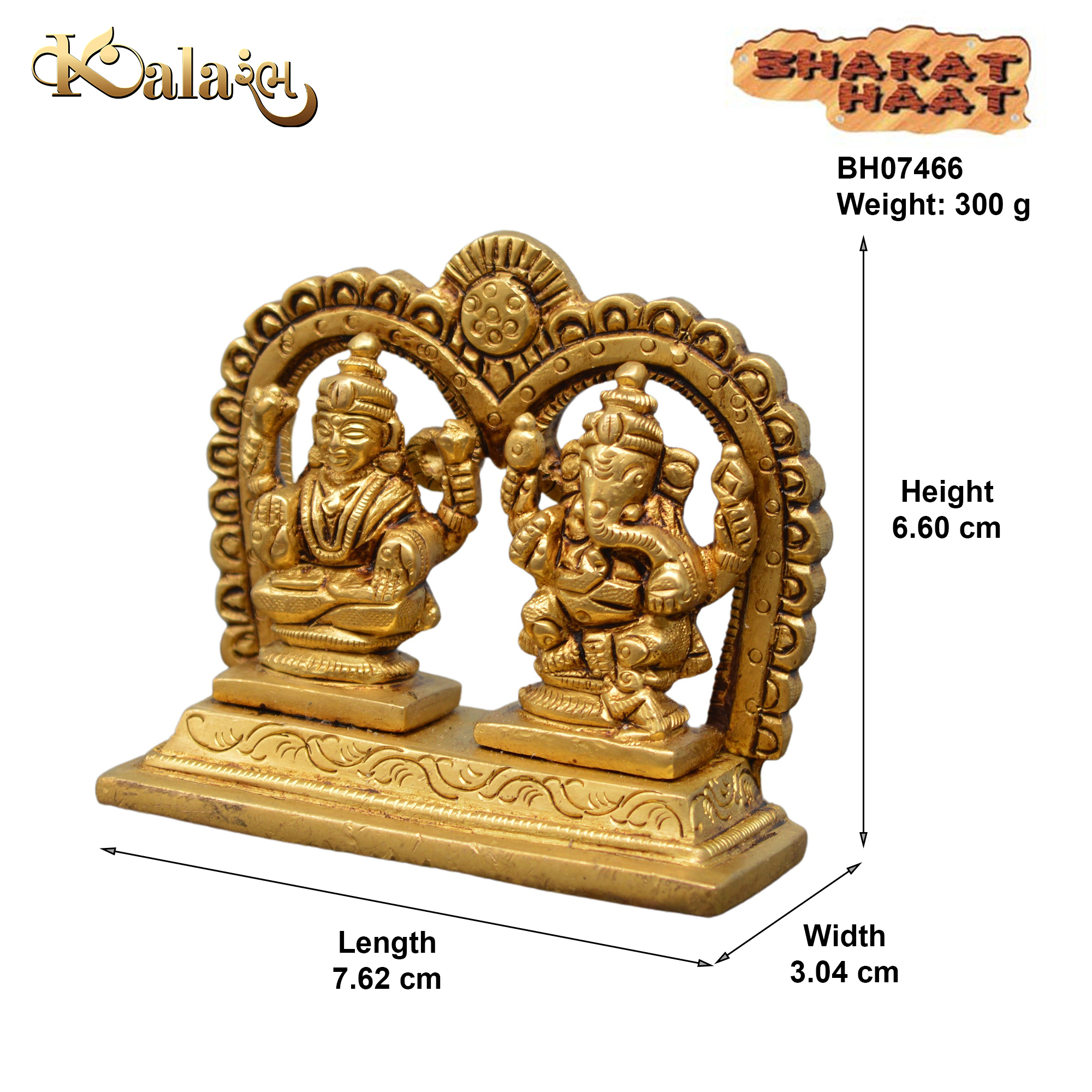 Design: Handcrafted Pure Brass Small Kaman Laxmi Ganesh Idol representing wisdom, prosperity, and divine blessings