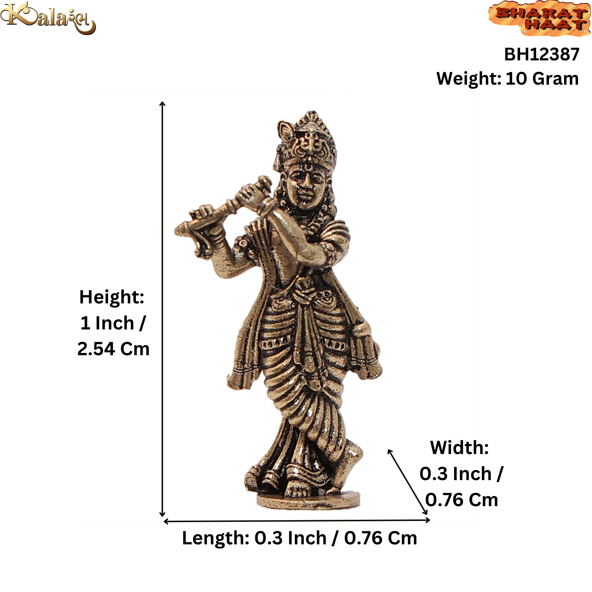 Brass Small Lord Krishna Murti for Home Temple, Car Dashboard & Gift, BH12387
