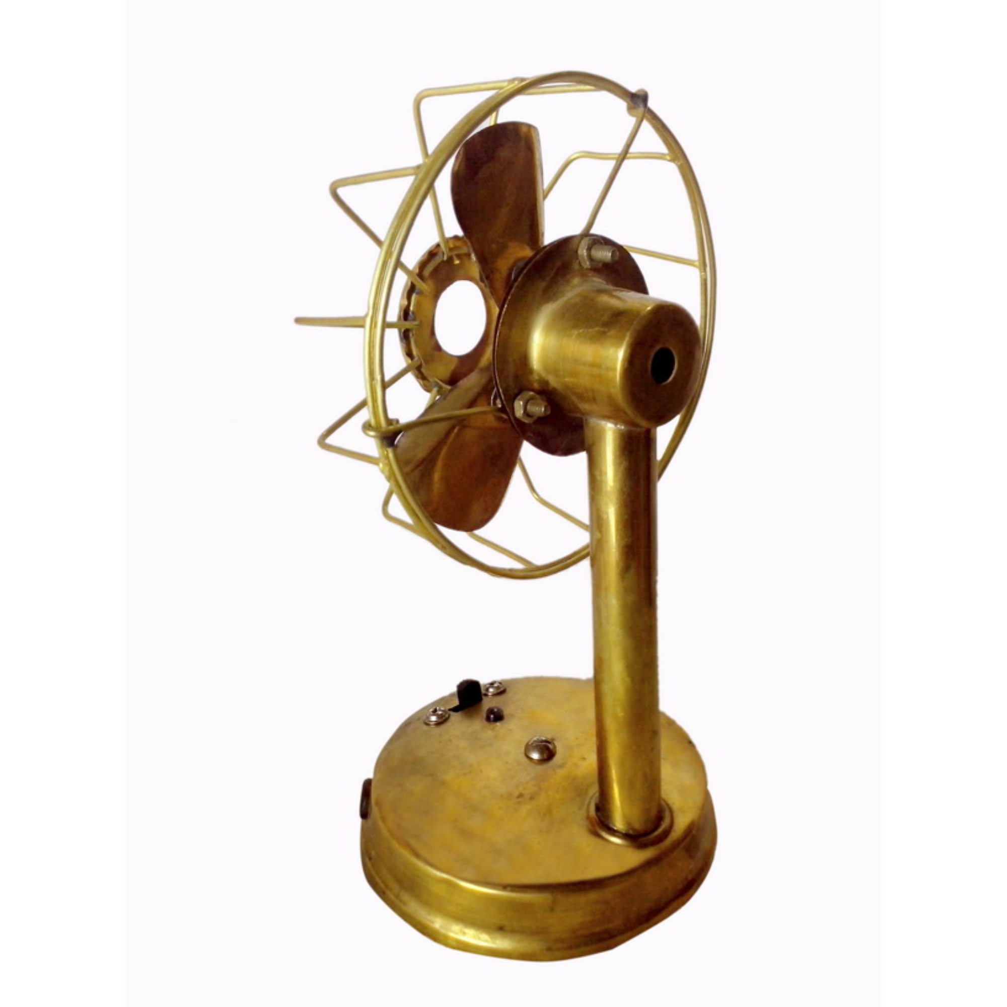 Introducing our elegant Brass Small Table Fan - the perfect blend of style and functionality for any space. This compact desk fan features a beautiful brass finish that adds a touch of vintage charm to your home or office decor.