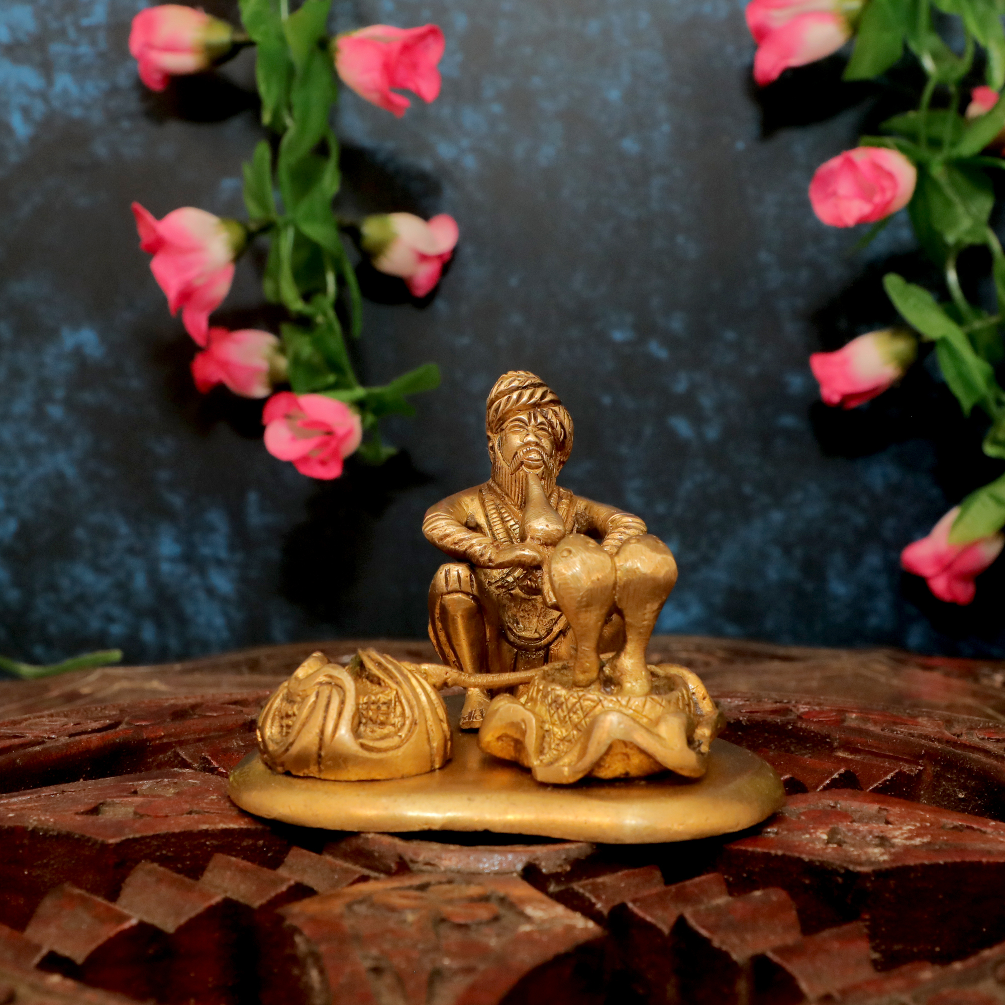 - Beautiful brass snake charmer figurine with intricate detailing