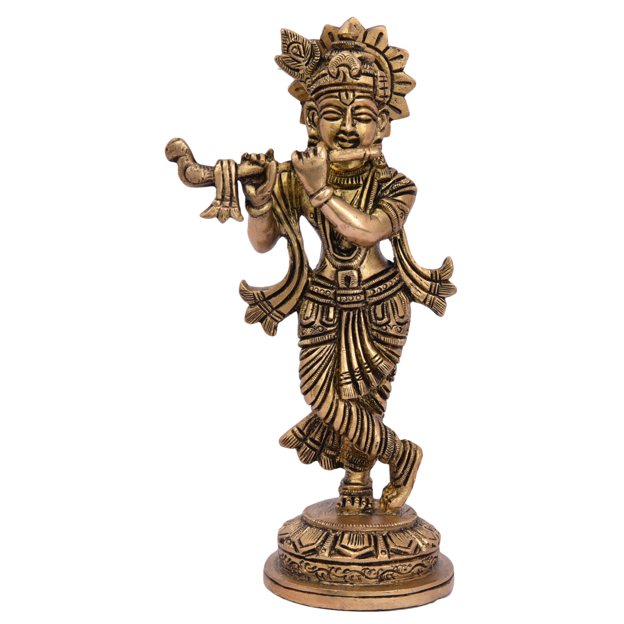 Brass Standing Krishna (3.5 x 2.5 x 7.5 Inch, 983 Gram) – Handcrafted brass statue of Lord Krishna in a graceful standing pose; ideal for home temples, meditation spaces, or gifting.