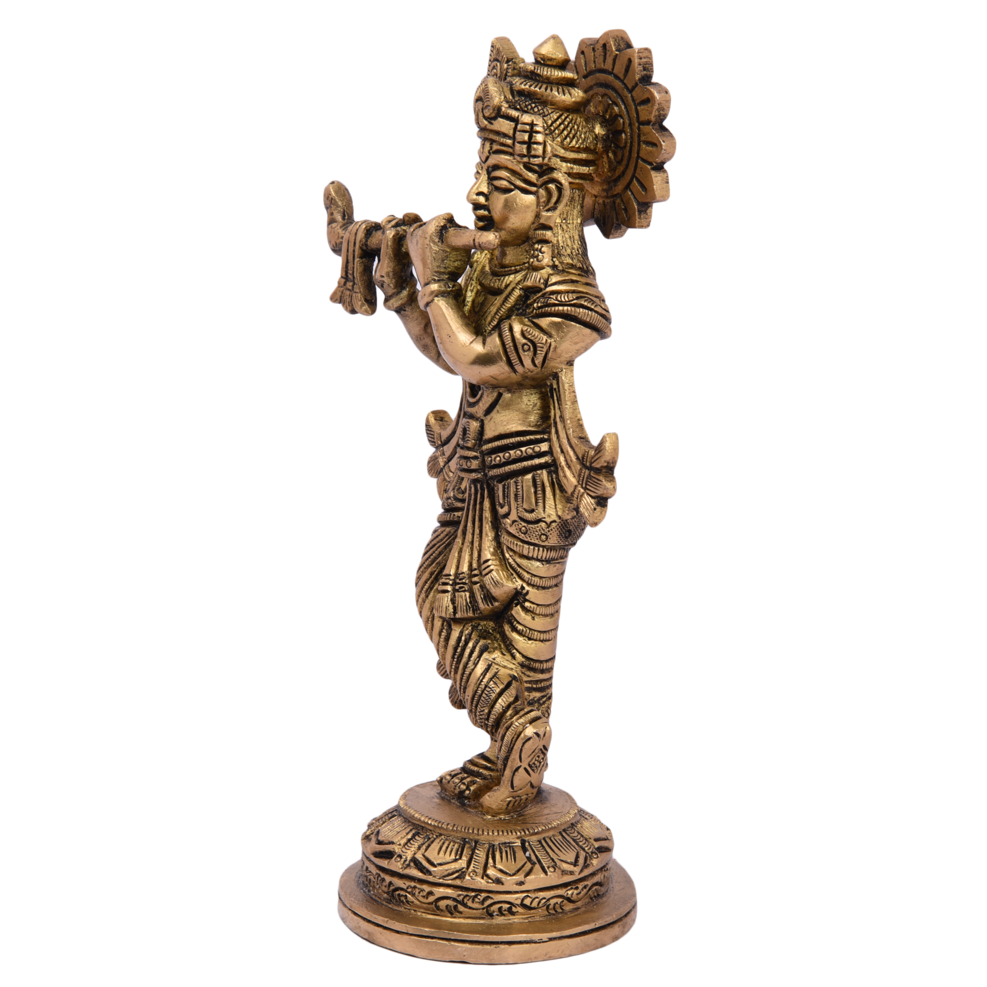Design: Features Lord Krishna in a graceful standing pose playing the flute, with carefully sculpted posture capturing divine charm and elegance.