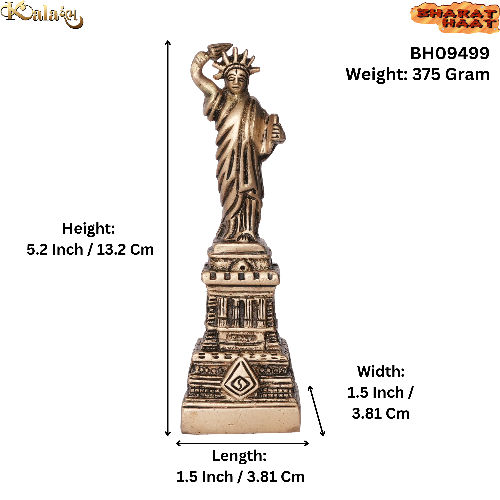 Miniature Brass Statue of Liberty, 1 Pc, size 1.5 x 1.5 x 5.2 Inch, weight 375g. Ideal for home, office, or gifting to collectors.