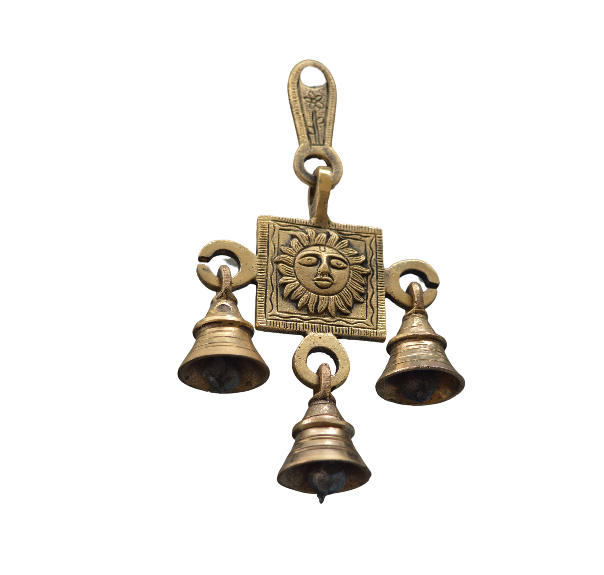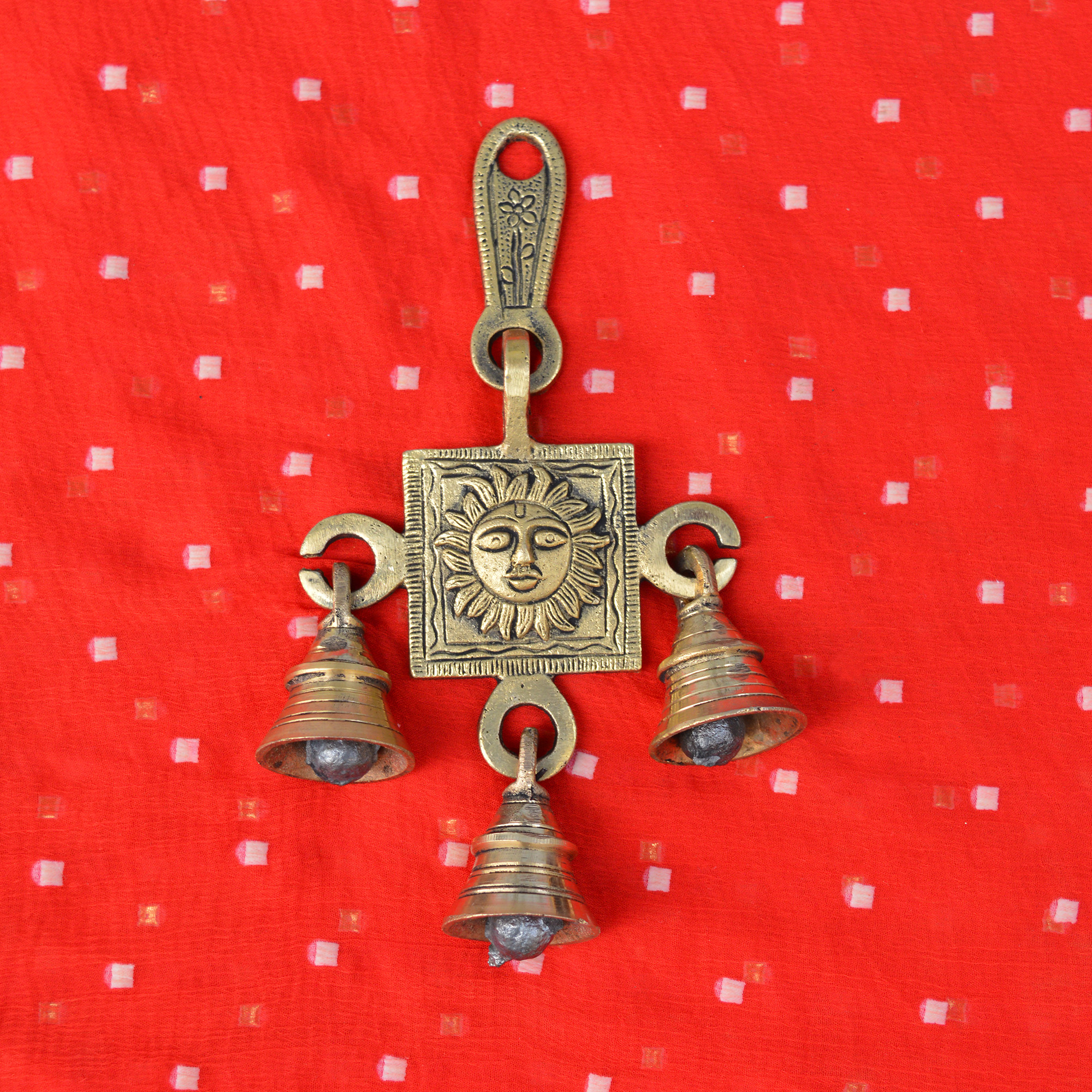 Design: Handcrafted Brass Sun Belt Bell featuring a beautiful Surya (Sun) motif for positive energy and protection