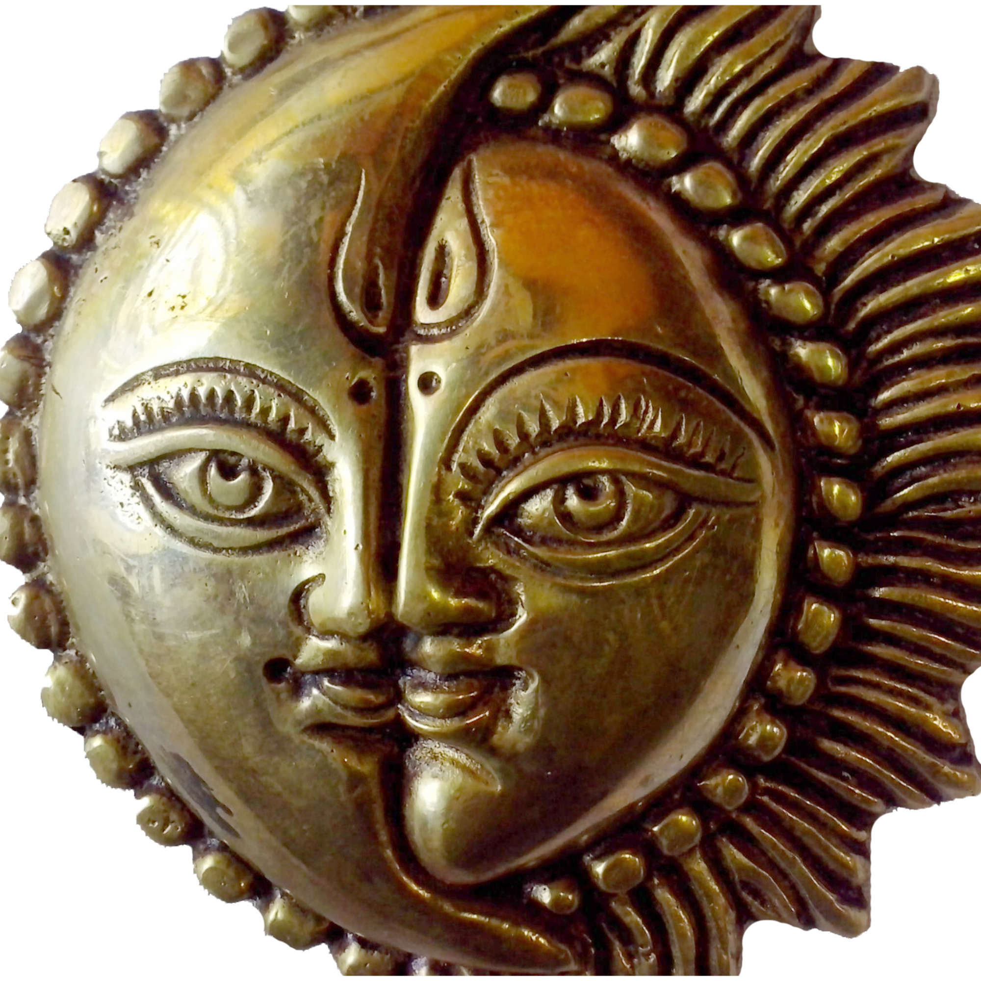 Beautifully handcrafted Brass Sun & Moon wall hanging — a symbol of balance and cosmic energy. Ideal for home décor, vastu enhancement, and gifting.