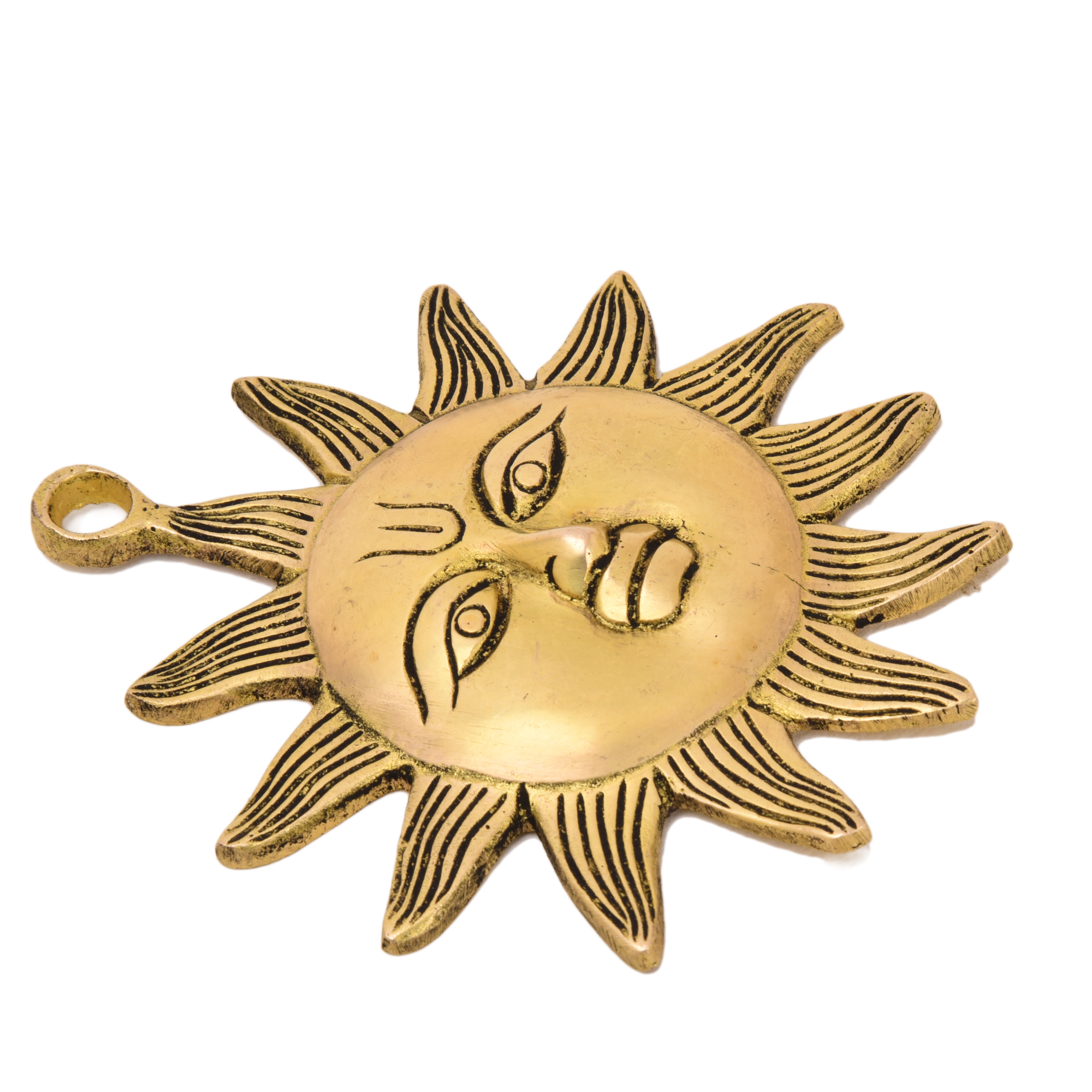 Design: Beautifully crafted Sun (Surya) face wall hanging in pure brass, symbolizing energy, positivity, and prosperity in Vastu and Indian tradition.