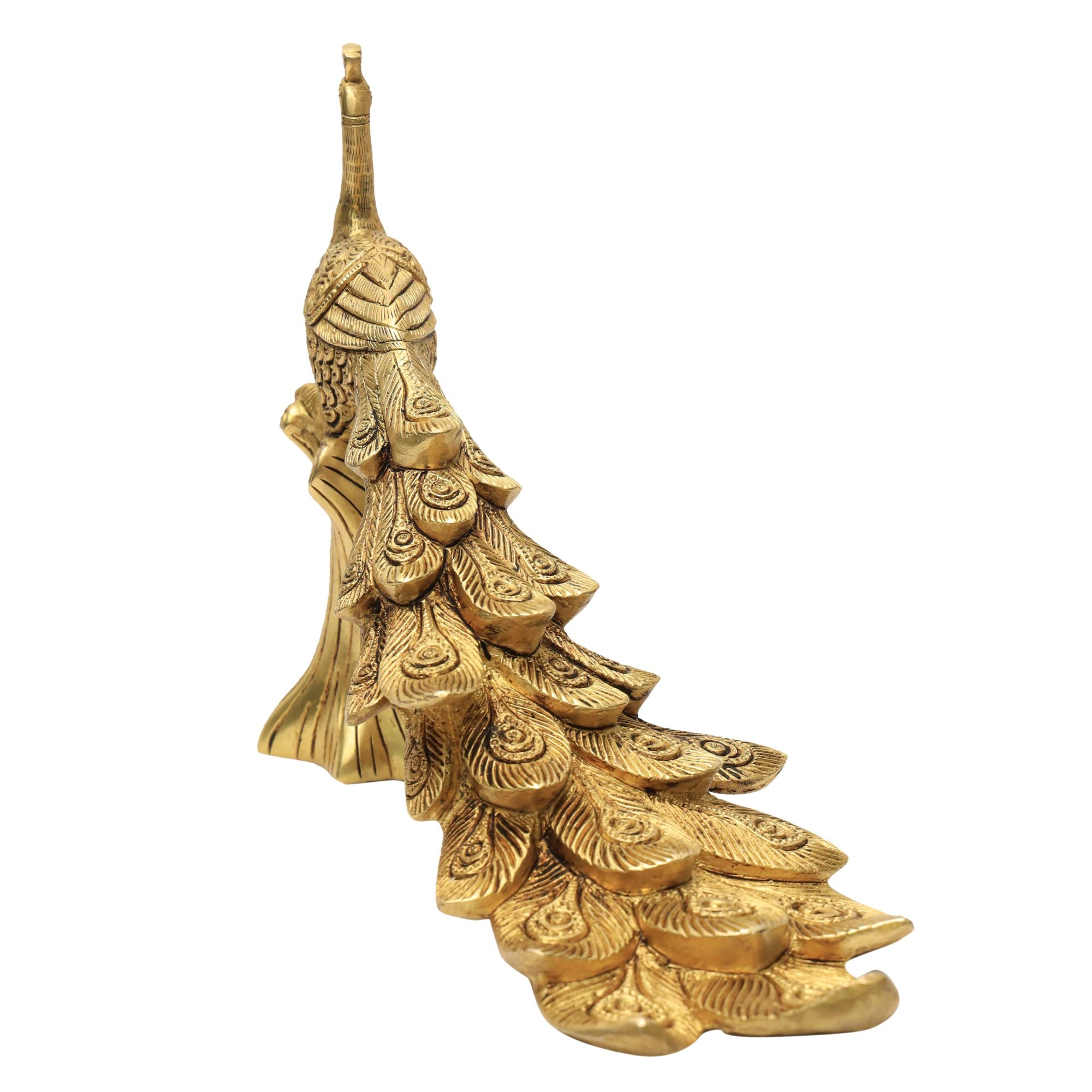 This Brass Peacock Statue is a beautifully handcrafted piece made from solid brass. Measuring 10.5 x 4.2 x 8 inches and weighing 2.24 kg, it features intricate detailing with a super fine finish, making it perfect for home décor, office spaces, or gifting.