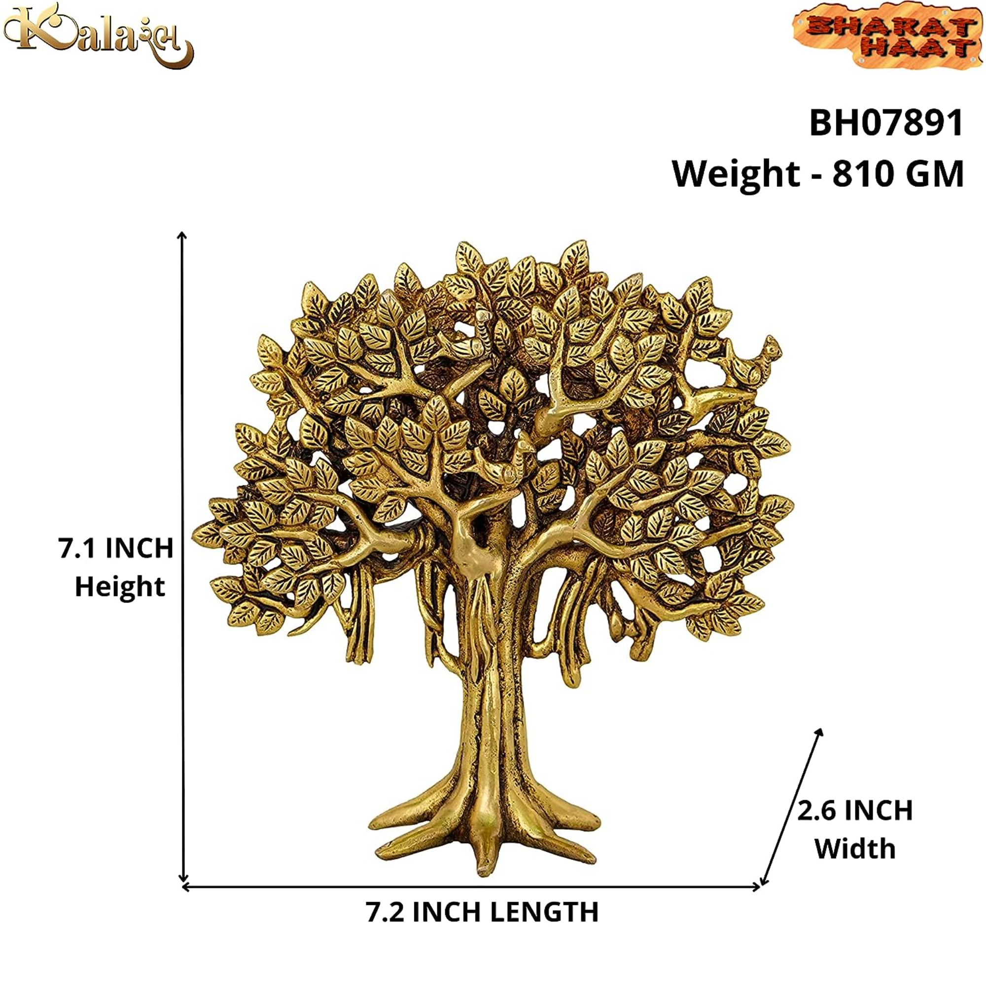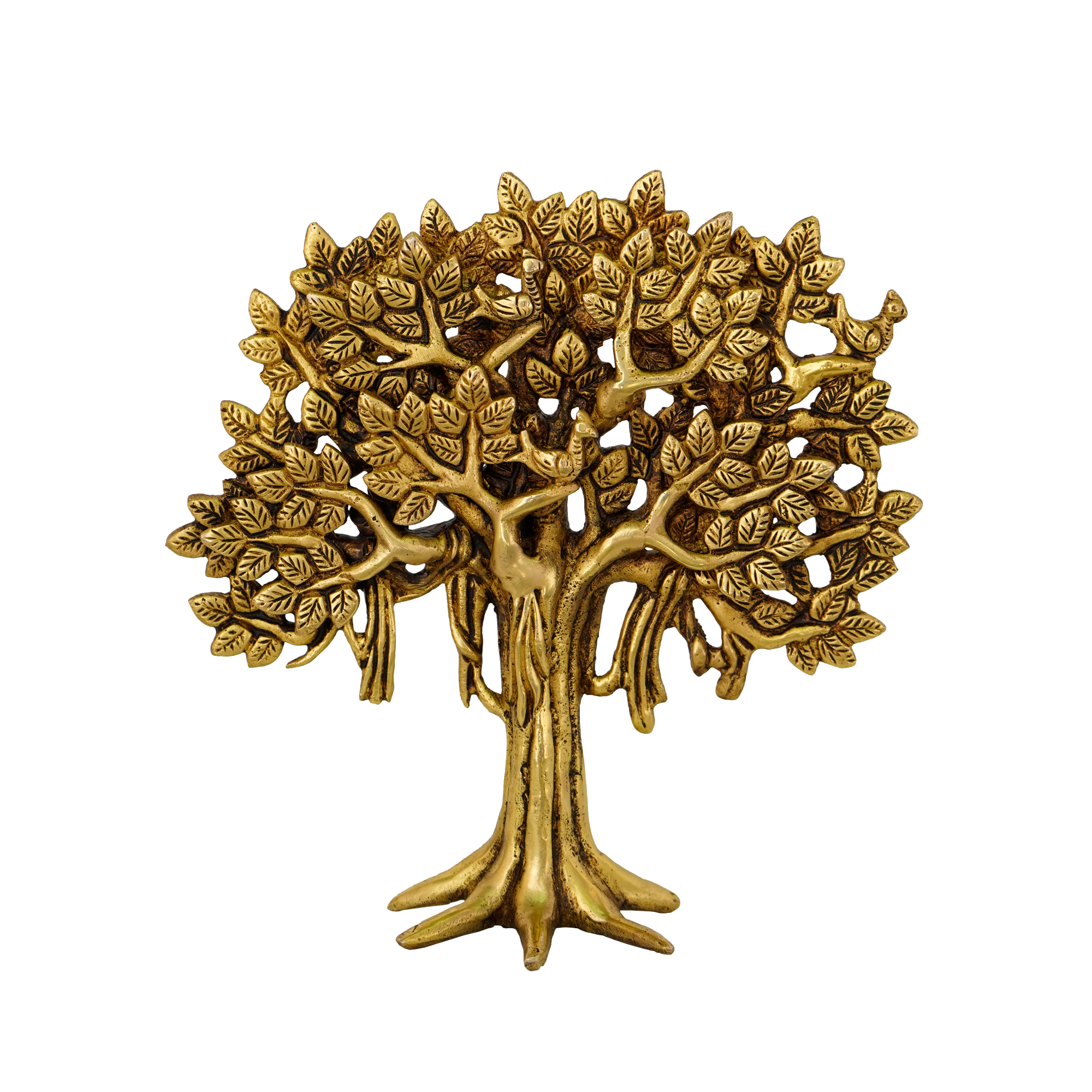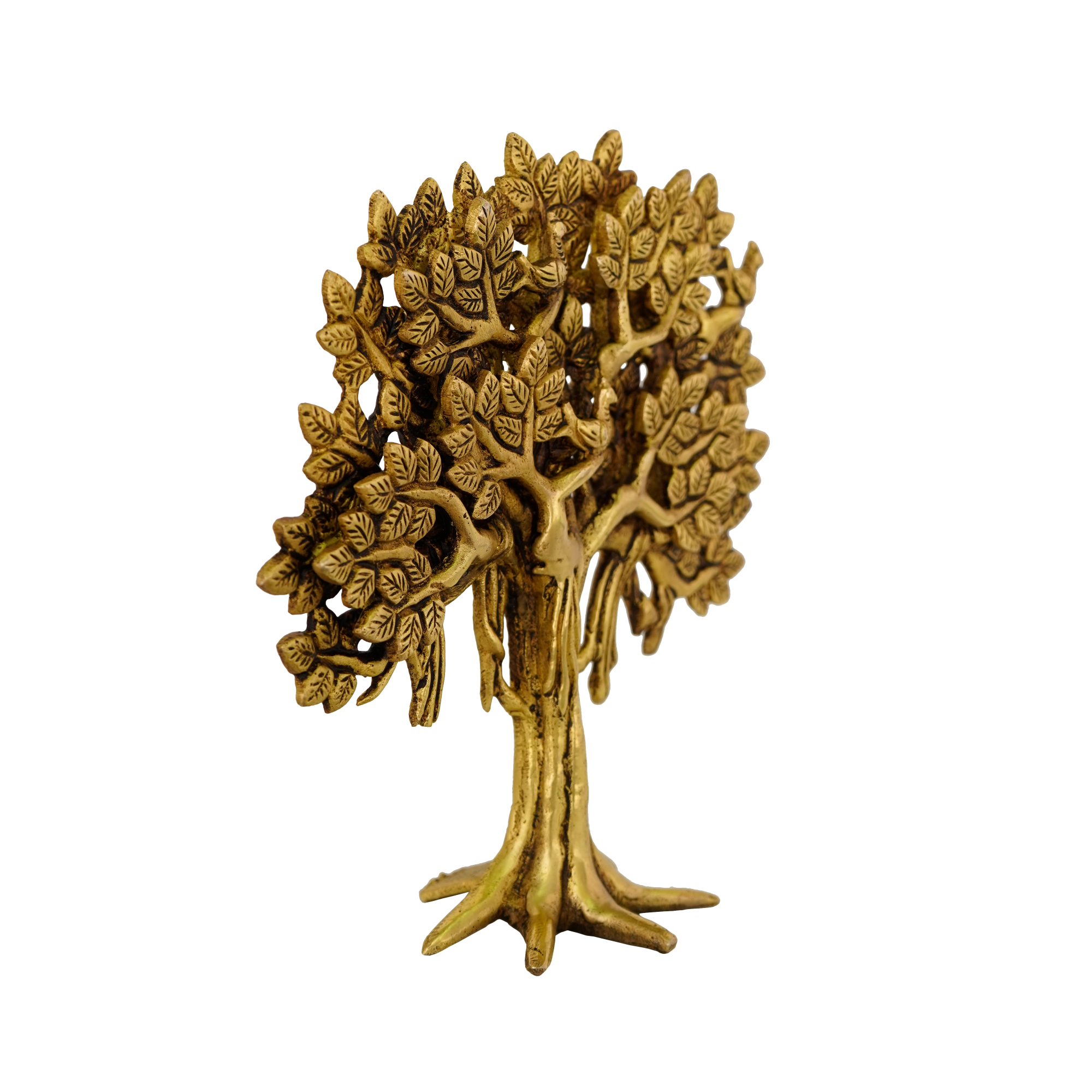 Design: Handcrafted brass tree figurine with intricate detailing on branches and leaves