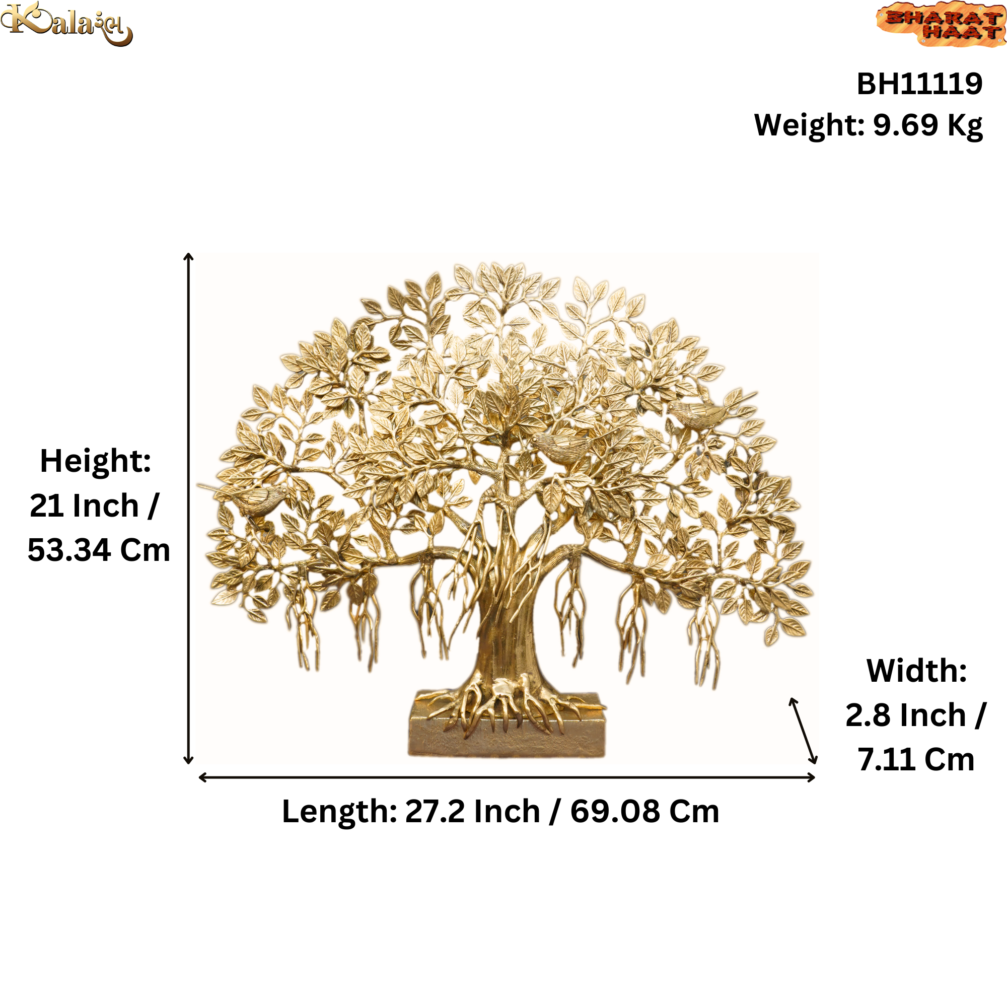 With a size of 27.2 x 2.8 x 21 inches (69.08 x 7.11 x 53.34 cm) and a sturdy weight of 9.69 Kg, it is a large, heavy, and durable brass showpiece ideal for adding grandeur to any room. The intricate design of branches and detailing showcases expert artistry, making it a striking centerpiece.