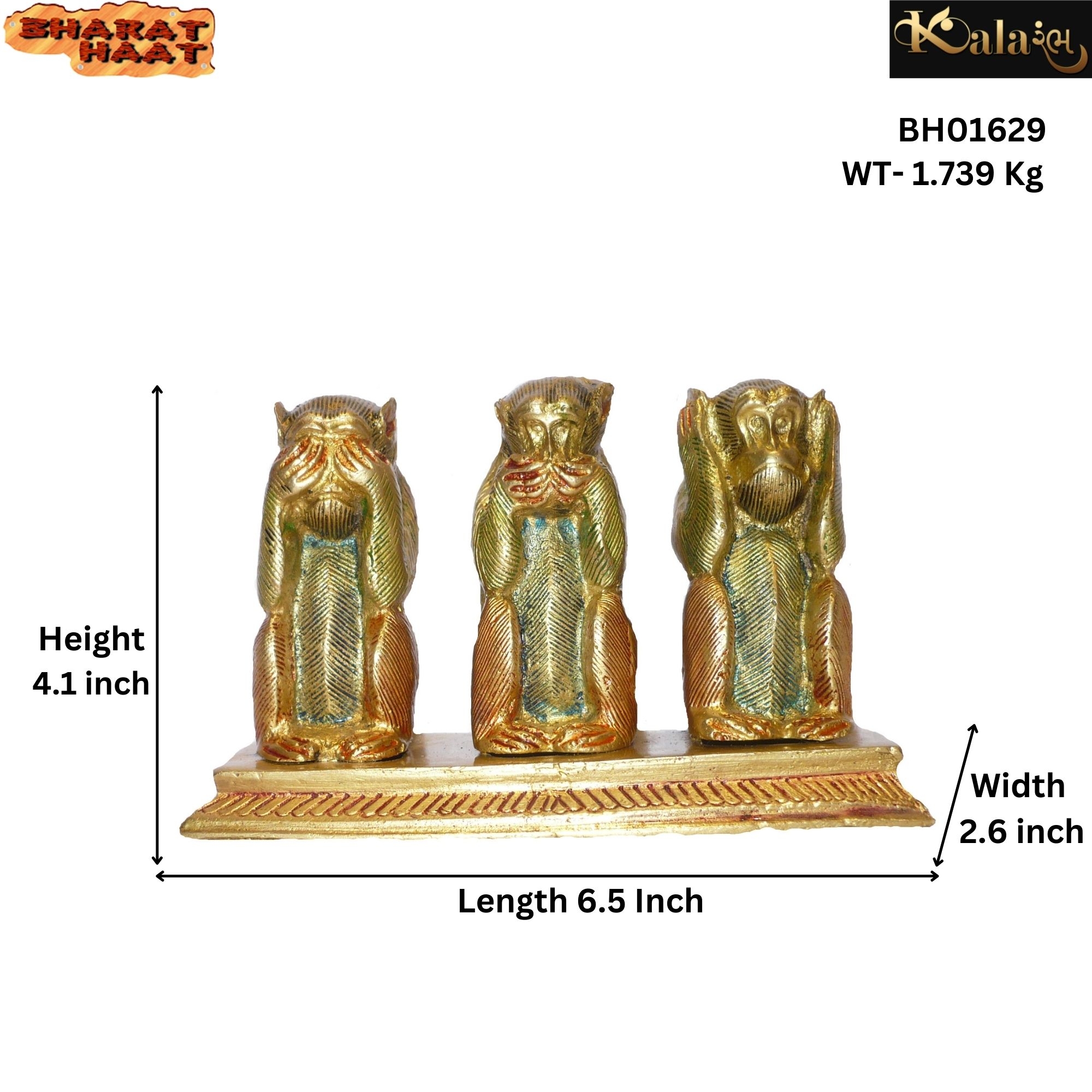 Elegant Brass Three Monkey Mid — handcrafted brass figurine symbolizing wisdom, ideal for home, office, or gifting.