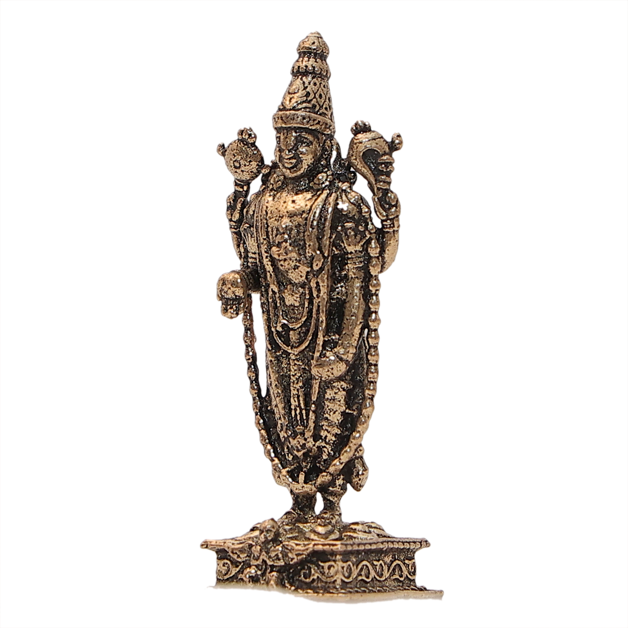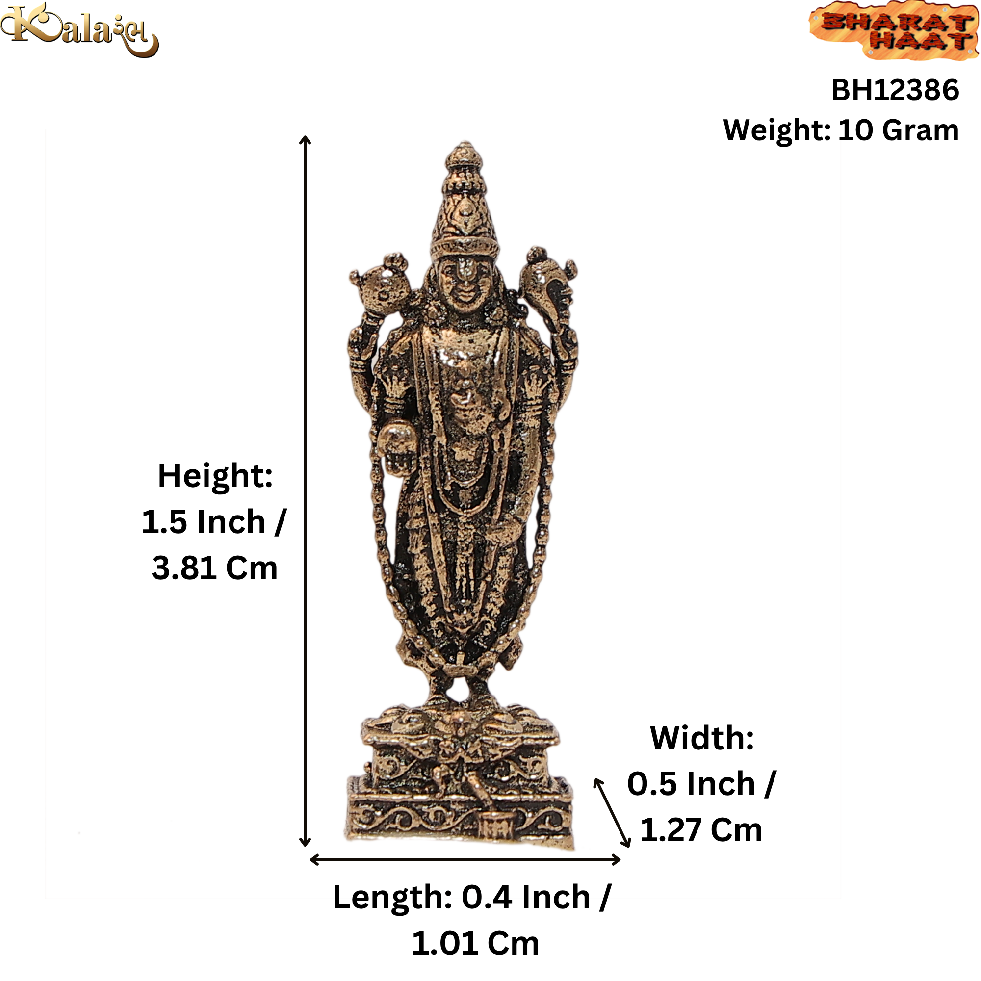 Due to its compact and lightweight size, this Balaji idol can be easily placed in your pooja room, office desk, or even carried during travel. The strong brass material ensures durability and long-lasting shine with minimal maintenance.