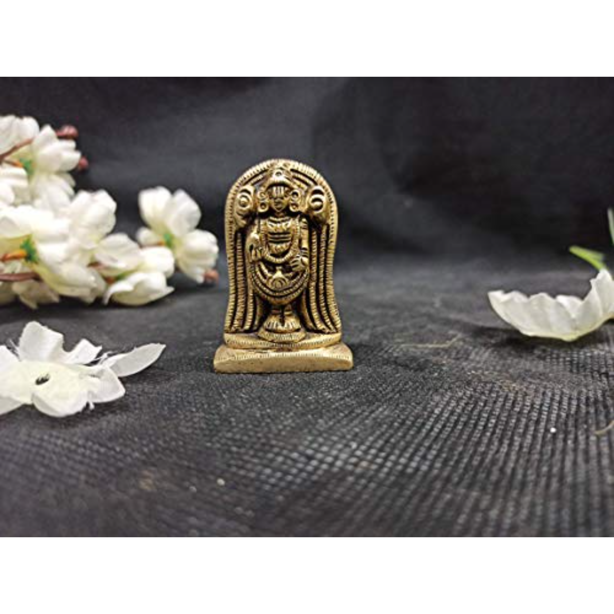 Elegant Brass Tirupati Balaji idol crafted with fine detailing. Ideal for pooja rooms, temples, or as a sacred gift representing prosperity and devotion.