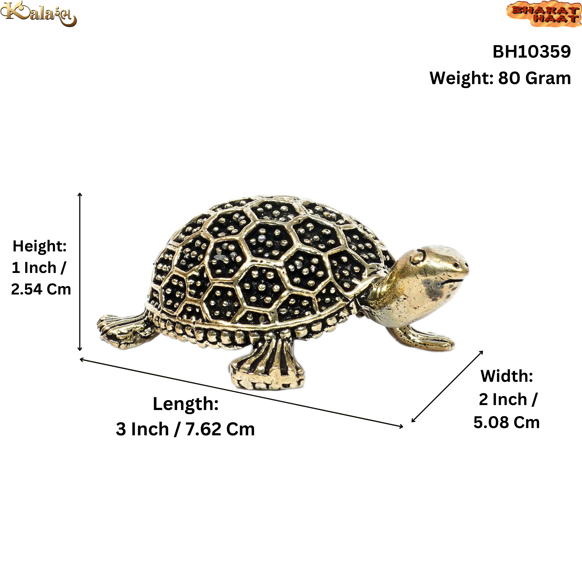 This intricately designed tortoise is crafted from premium quality solid brass, featuring a smooth polished finish and fine detailing. Measuring 3 x 2 x 1 inches and weighing 80 grams, it is compact yet elegant, suitable for display on shelves, tables, pooja altars, or home temples.