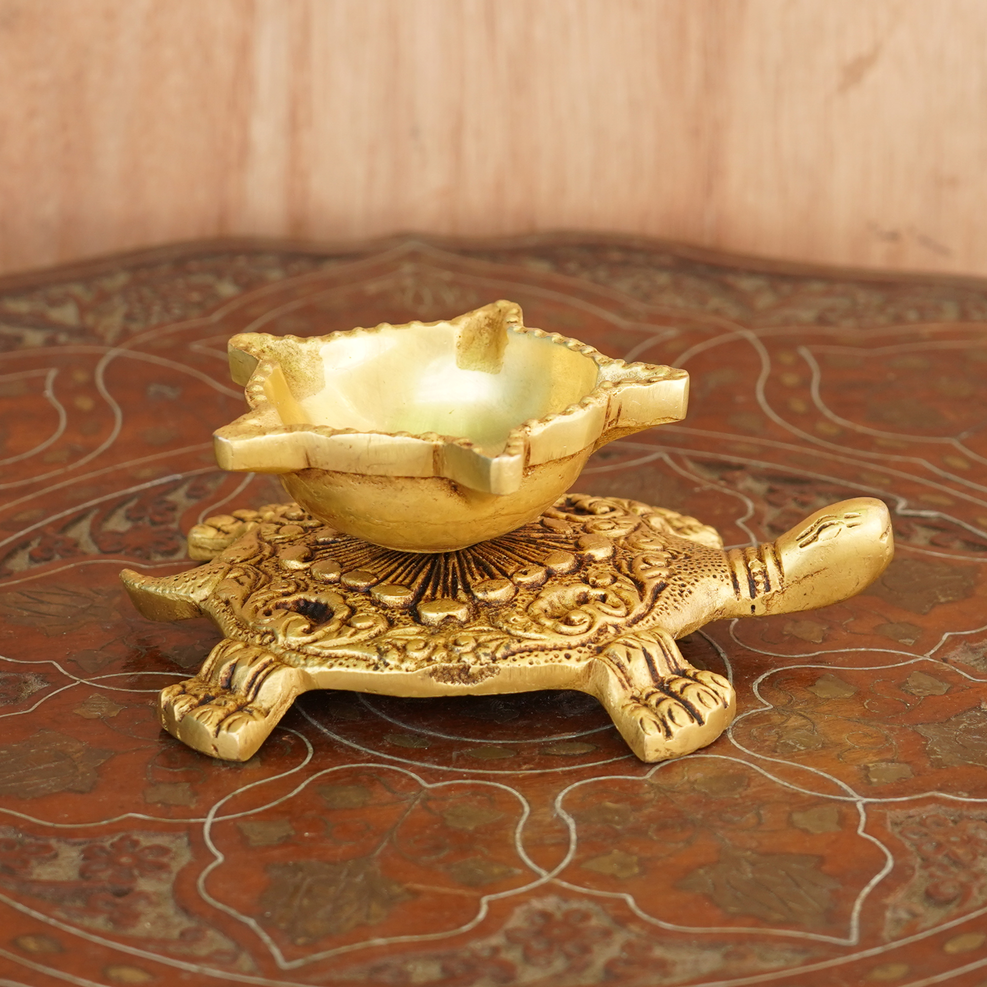 Design: deepak features a beautiful, detailed carving of a Tortoise (Kachua), a revered symbol in Indian culture representing longevity, stability, wealth, and good fortune