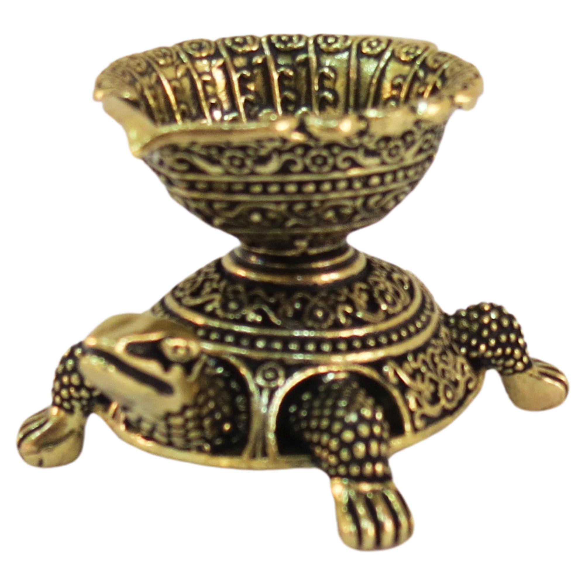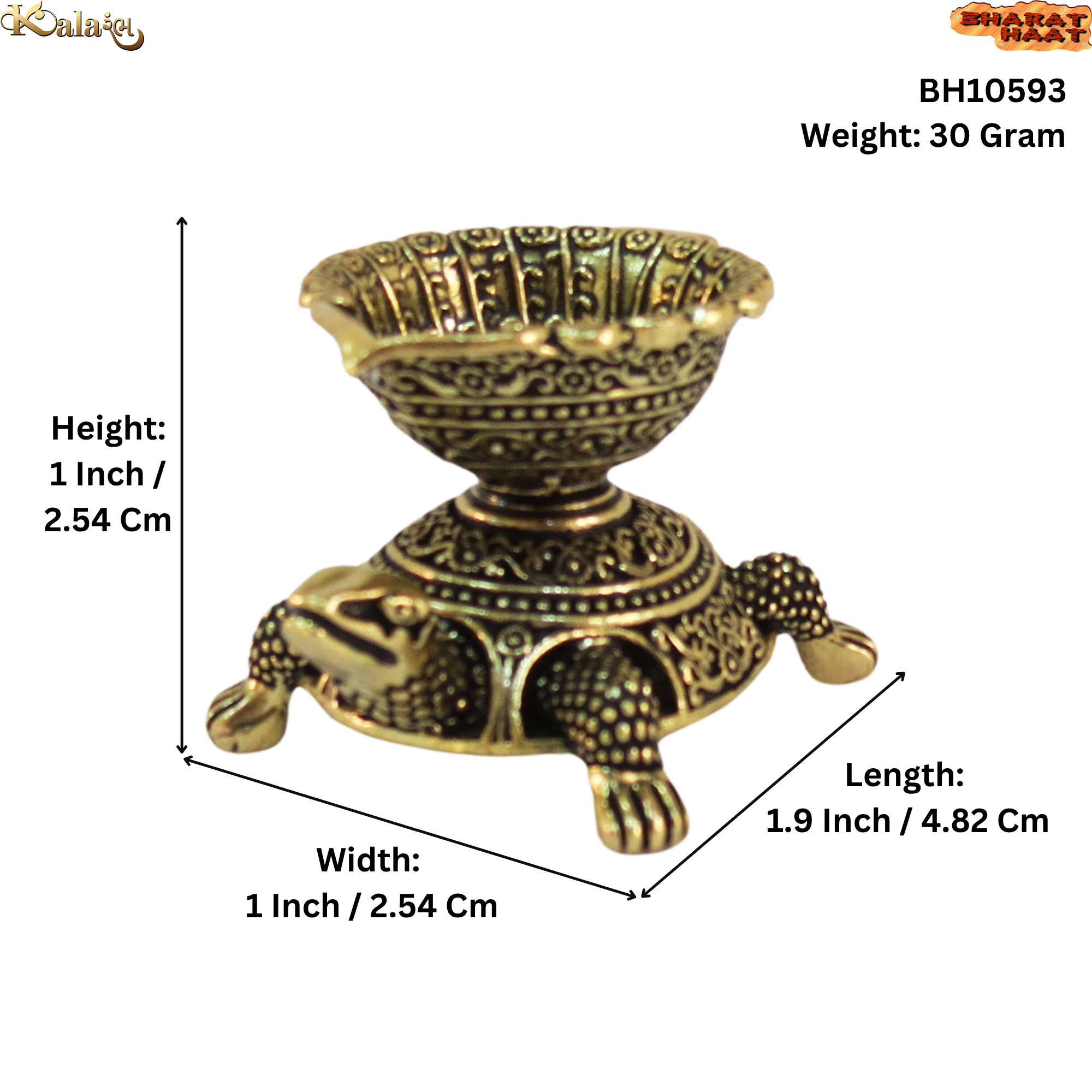 Brass Tortoise Diya | Small Brass Oil Lamp for Pooja, Home Decor & Gifting (1.9 x 1 x 1 Inch, 30 Gram), Enhance the spiritual ambiance of your home with this Brass Tortoise Diya, a miniature oil lamp crafted from high-quality brass. The tortoise symbolizes stability, longevity, protection, and prosperity in Vastu Shastra, making it a perfect addition to your pooja room, meditation corner, or sacred space.