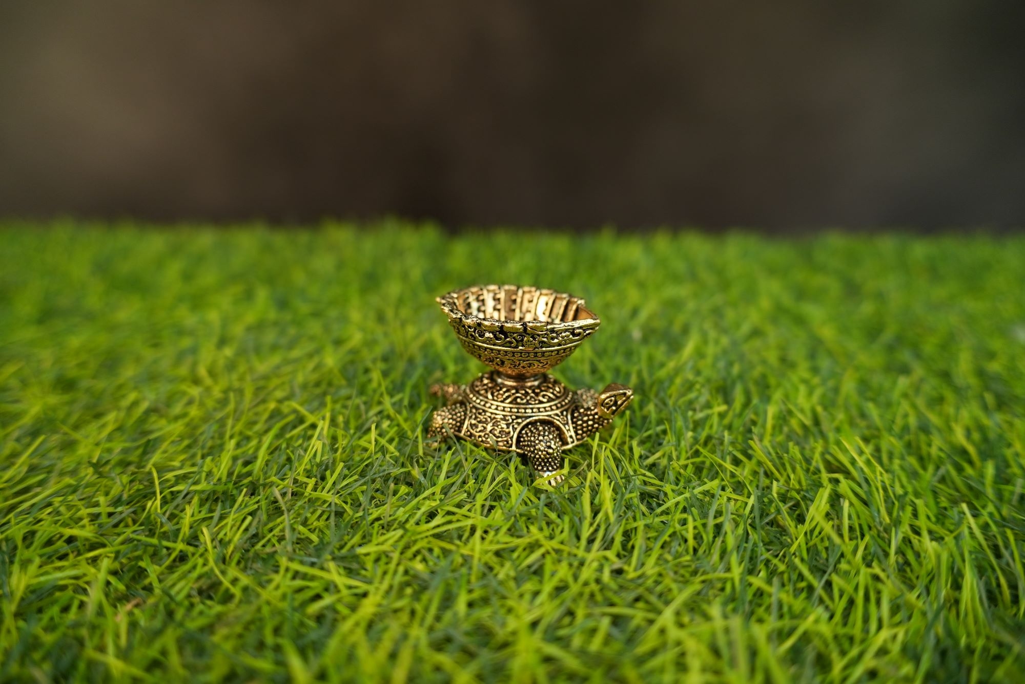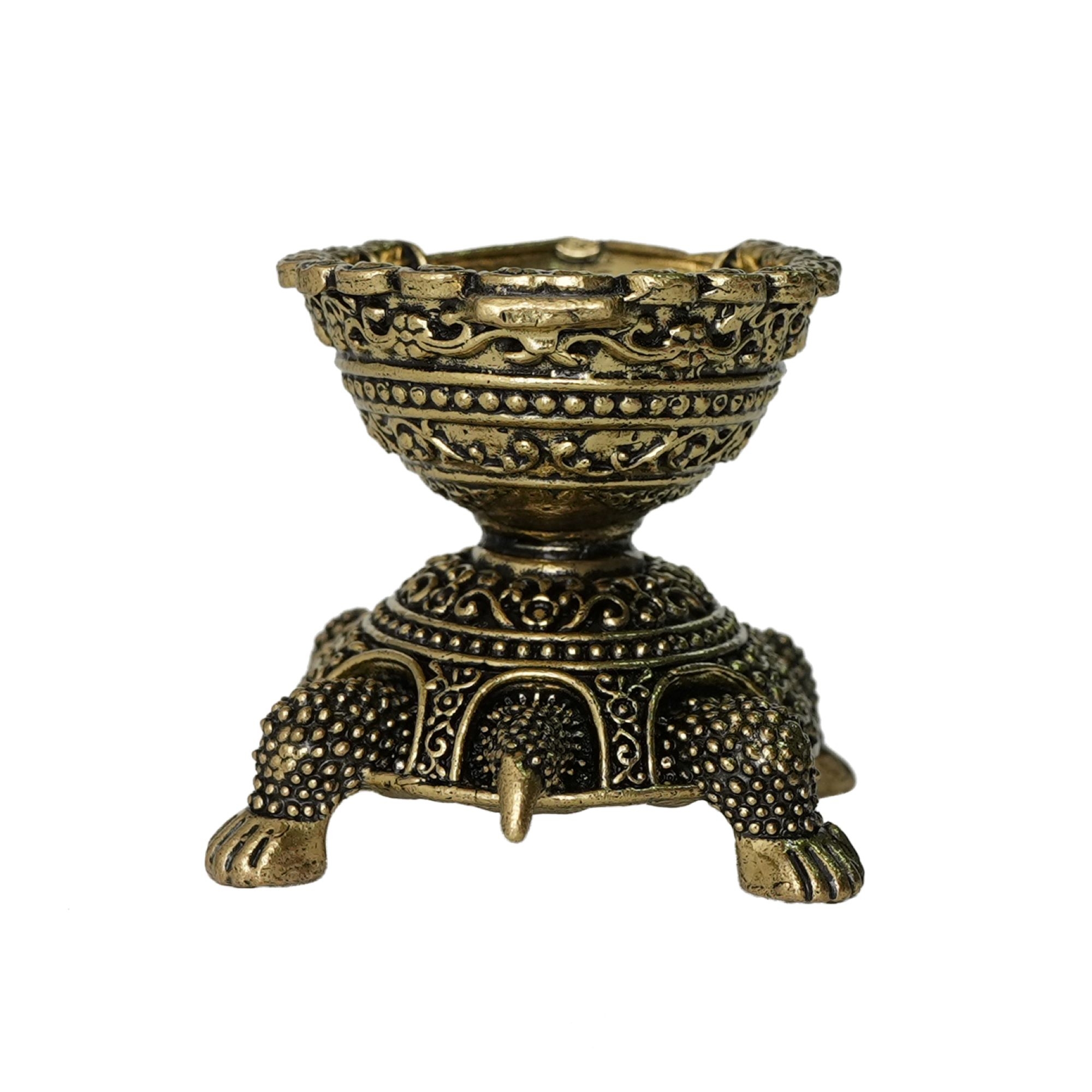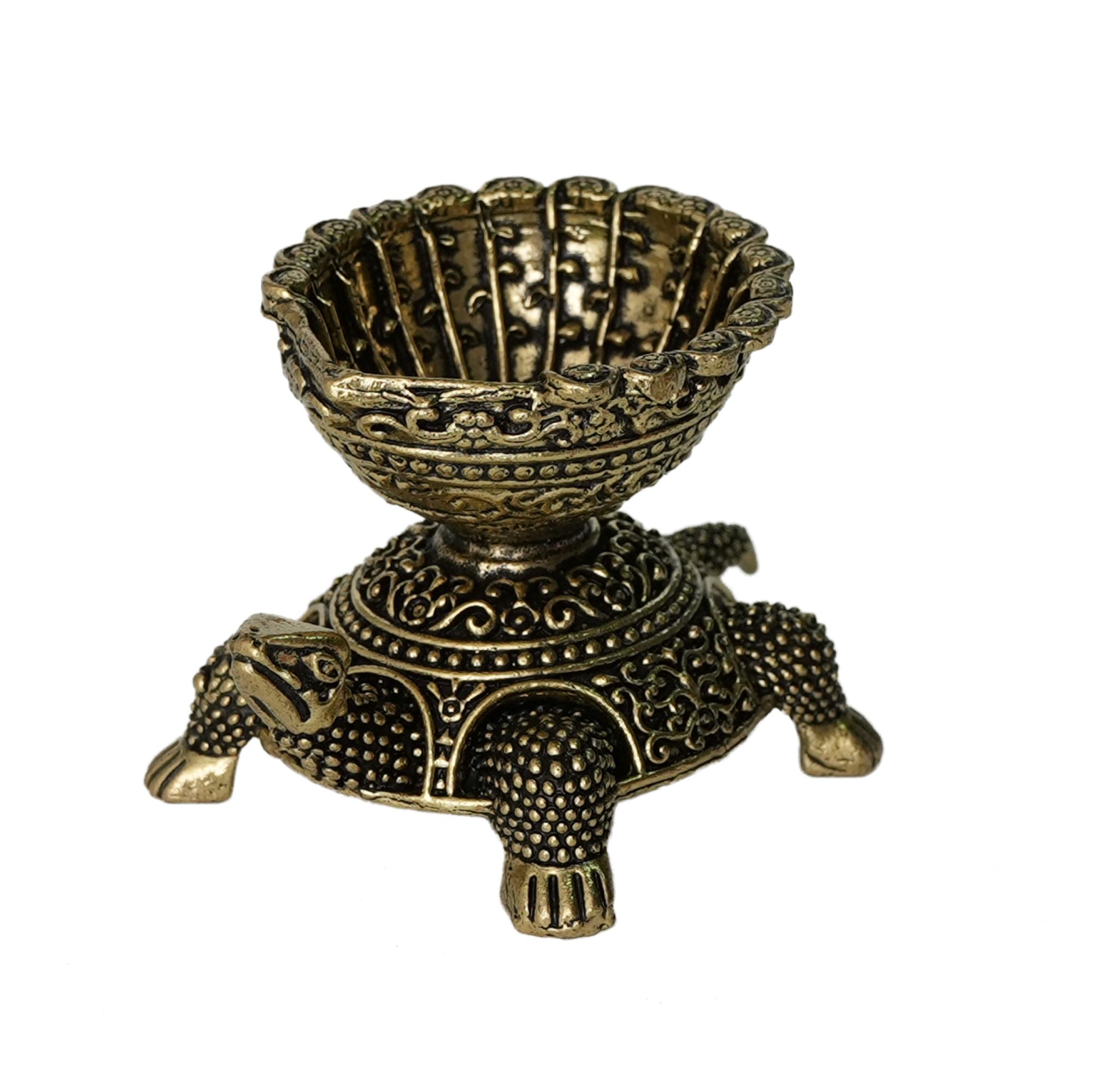 Design: Features a tortoise-shaped base with an oil diya on top.