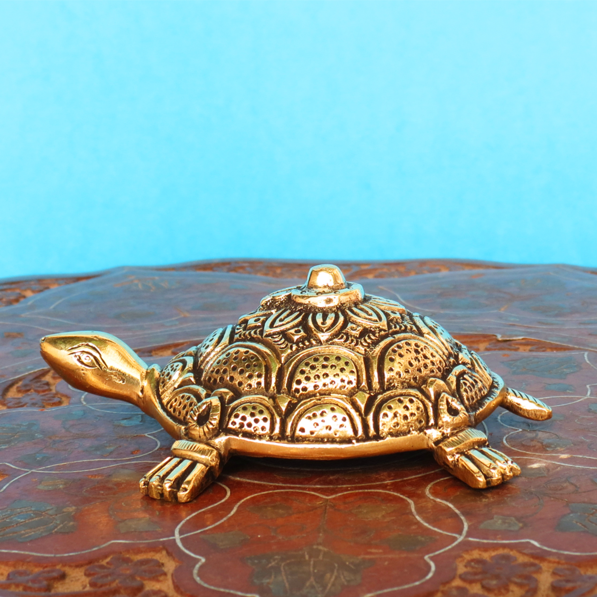 Design: Elegant tortoise figurine crafted in traditional Indian style, symbolizing longevity and stability