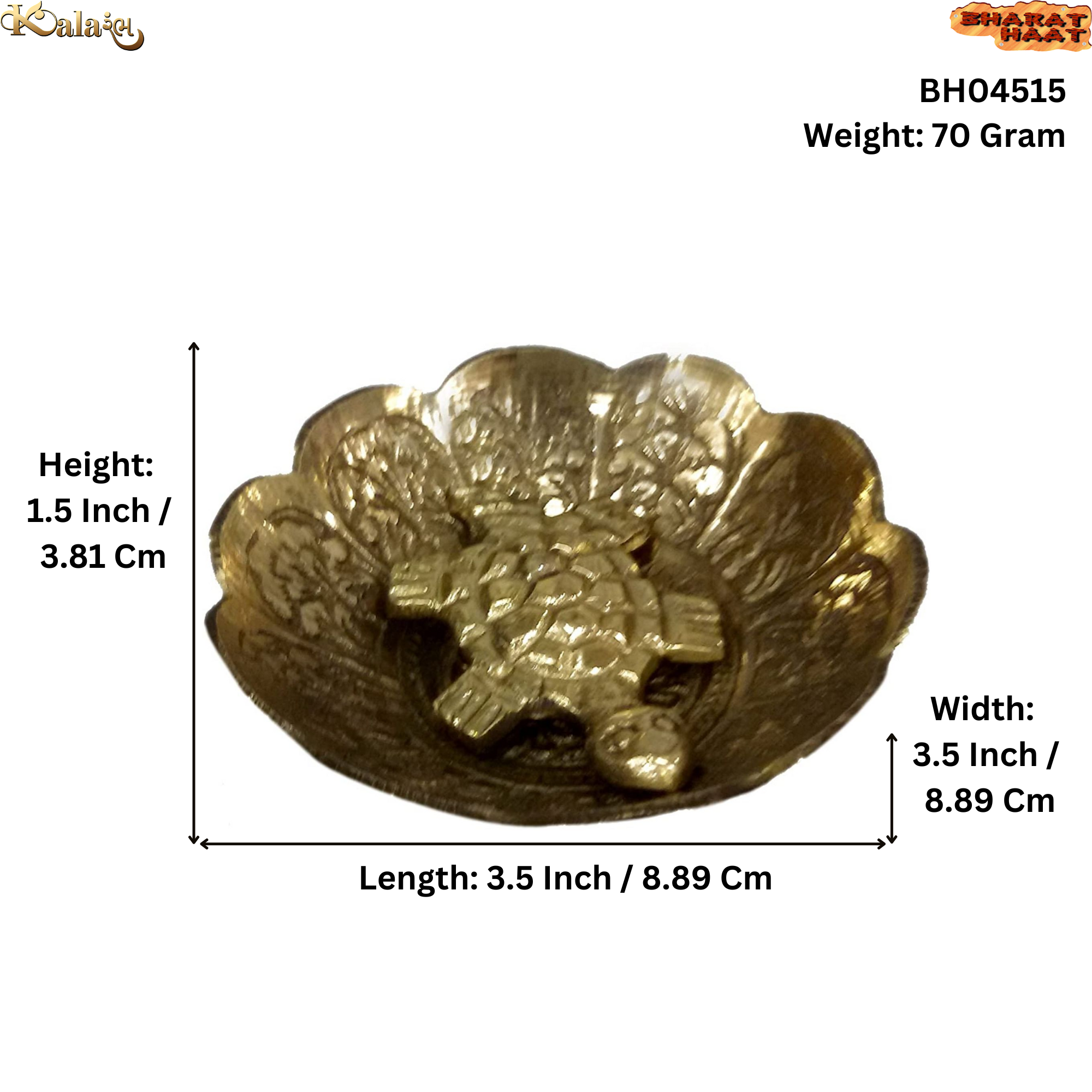 Handcrafted Brass Tortoise Plate with intricate detailing, perfect for pooja rooms, shelves, or as a decorative collectible.