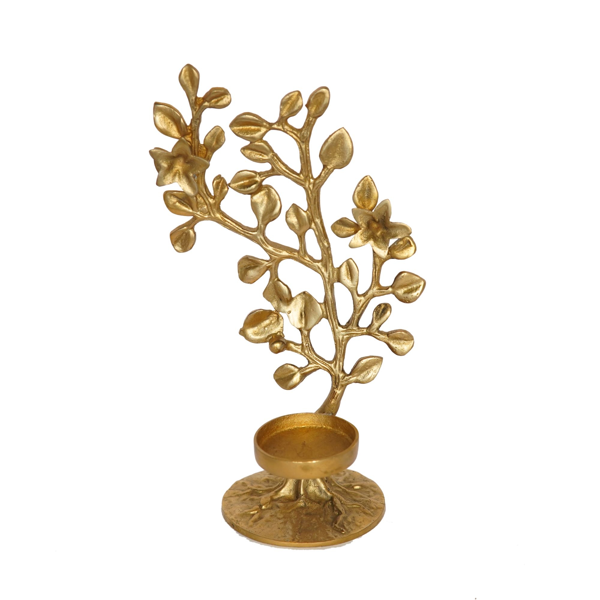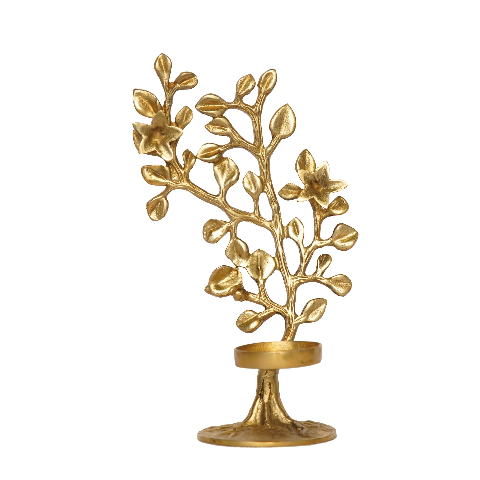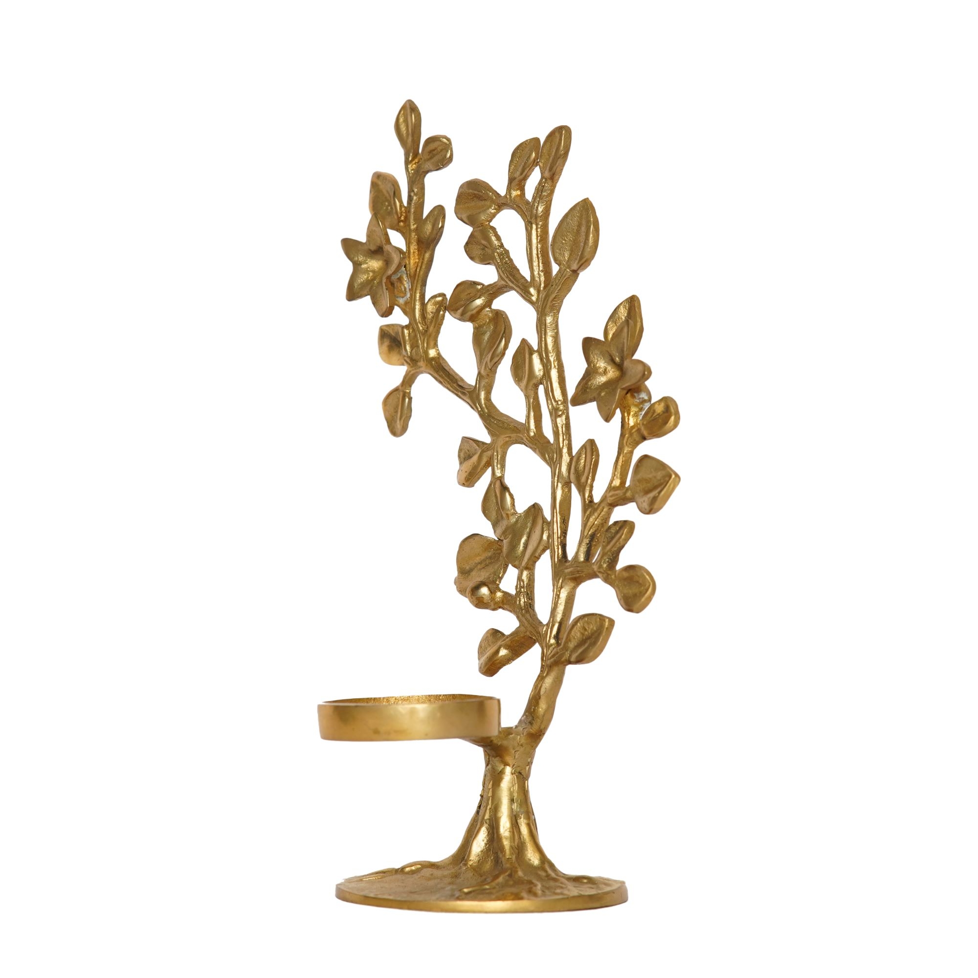 Artistic Tree Design: Unique handcrafted brass tree structure holding a candle stand—symbolising growth, light, and positivity.