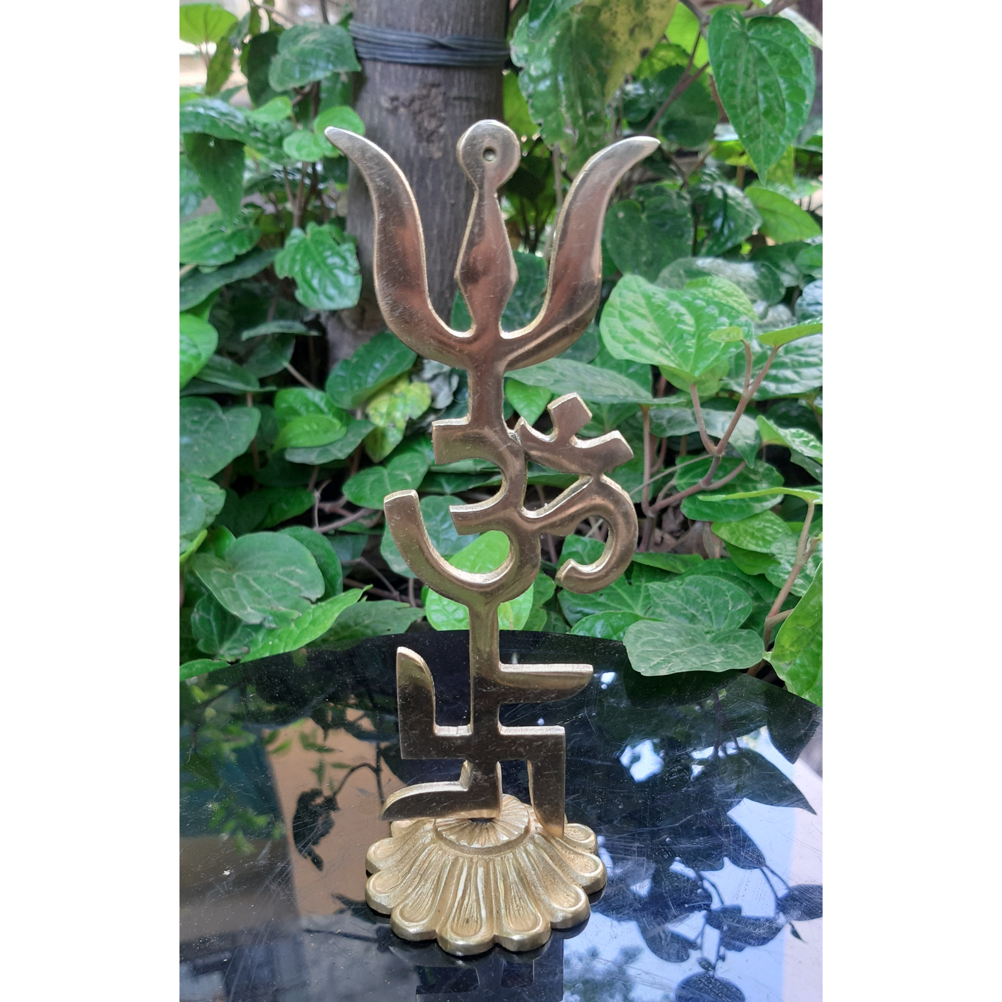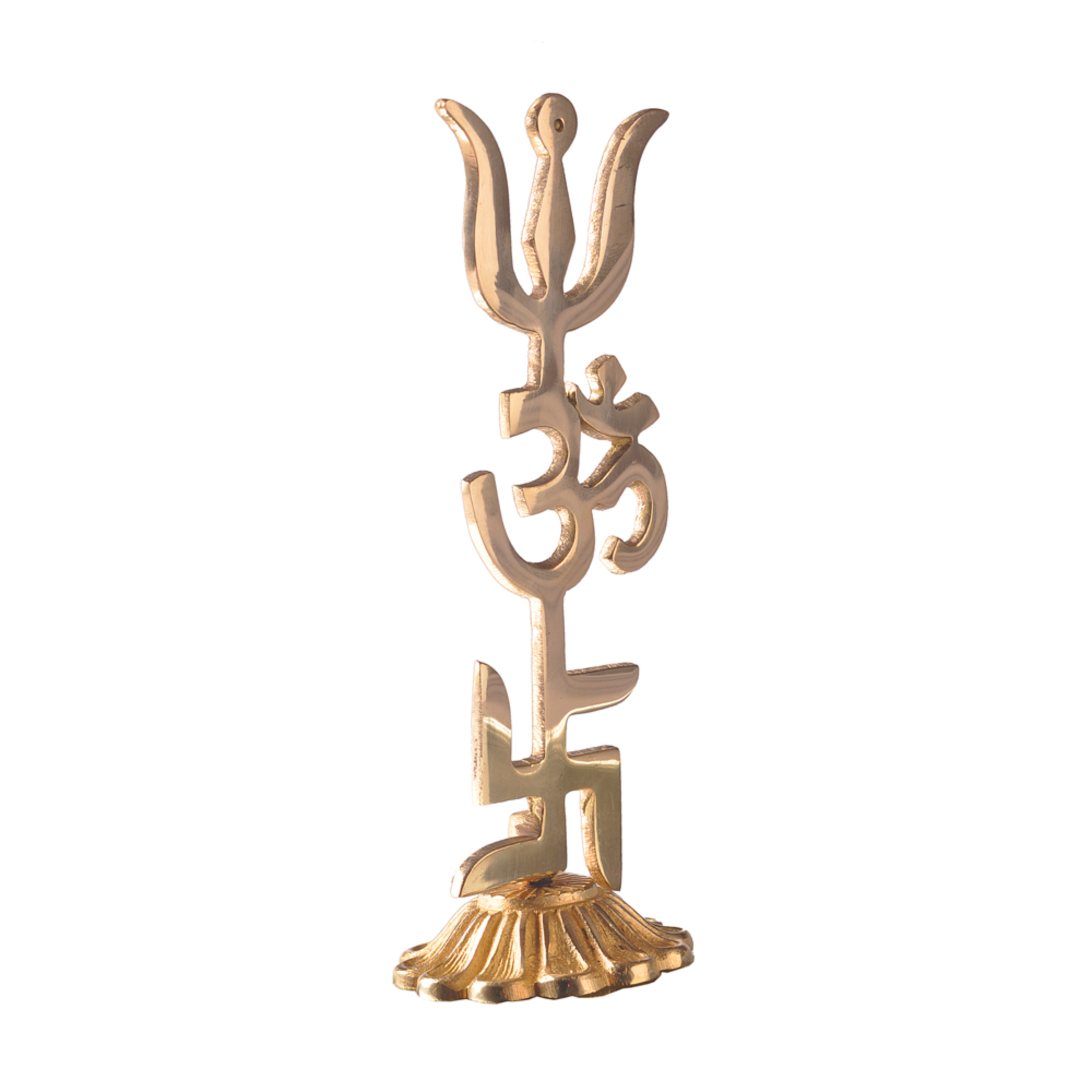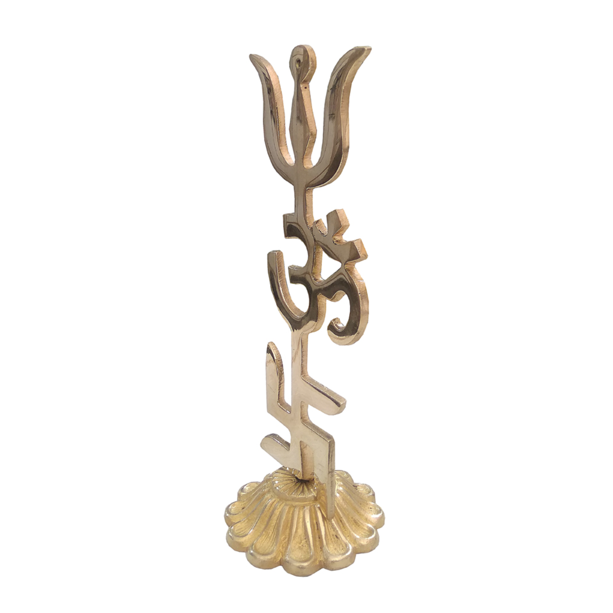 Handcrafted from premium-quality solid brass with detailed Trishul and Swastik design