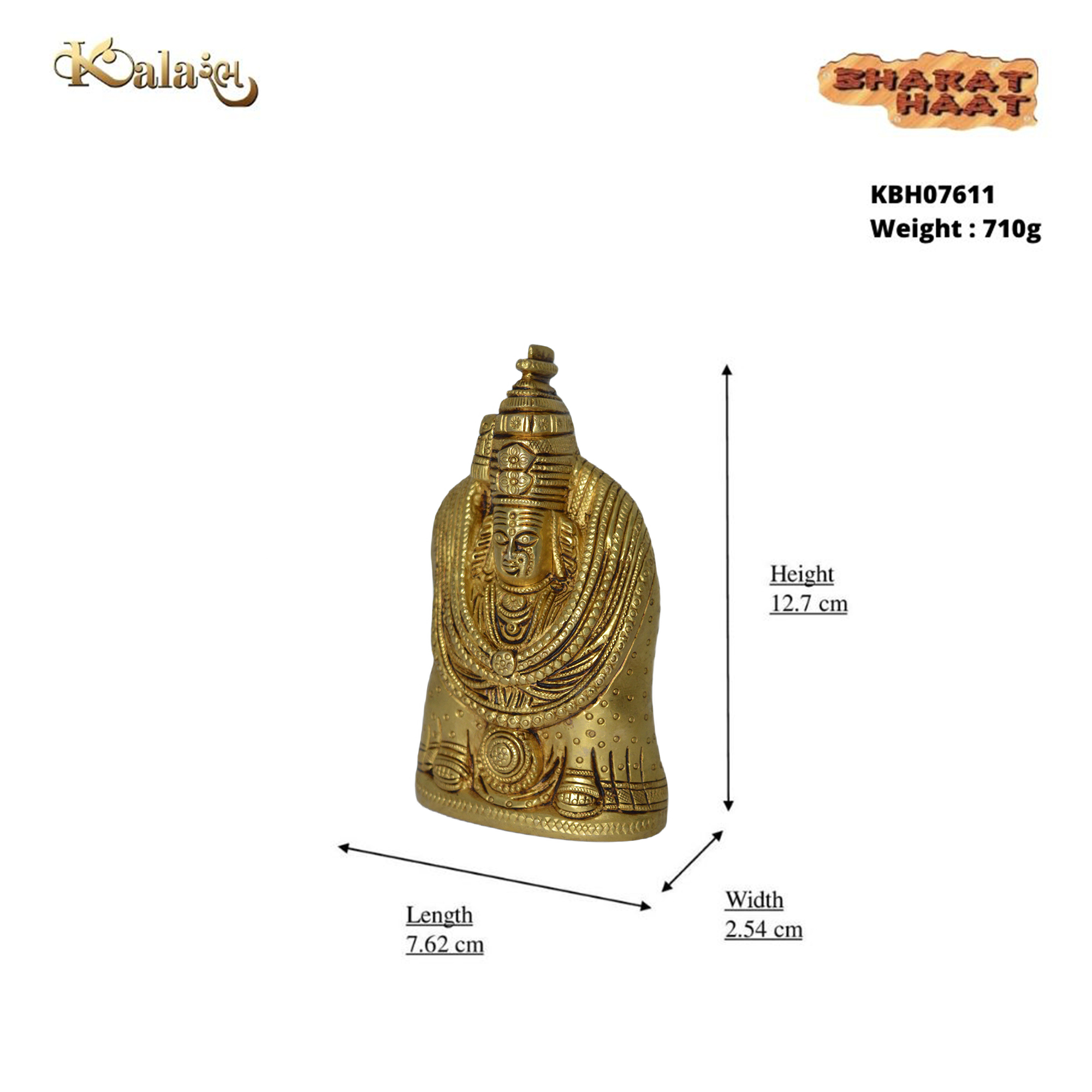 Design: Handcrafted brass idol of Goddess Tulja Bhavani with intricate detailing