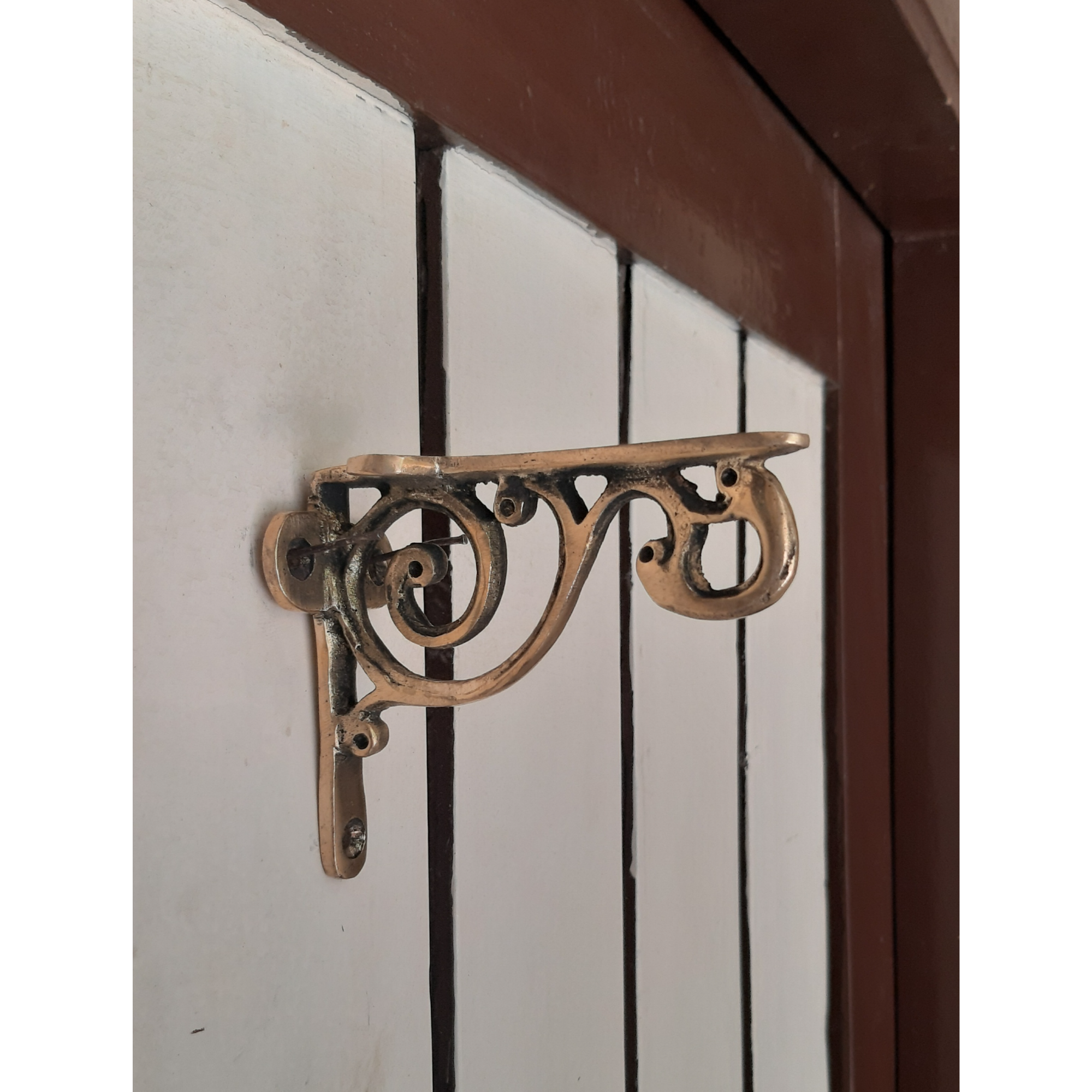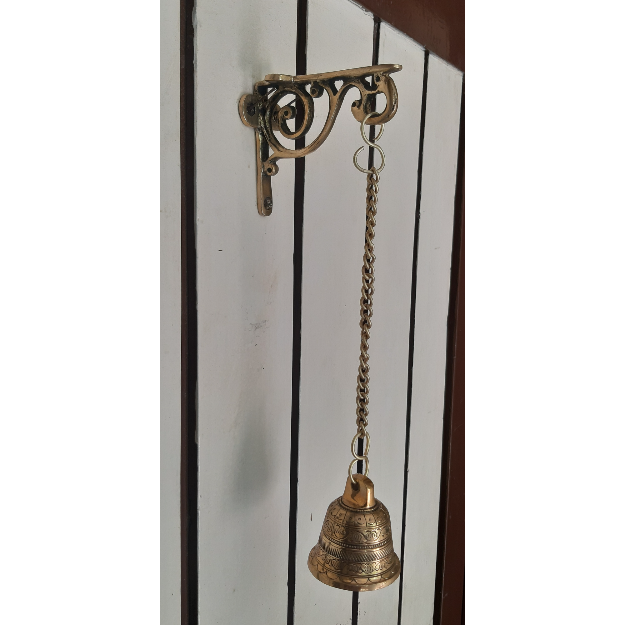 Brass Wall Hanging Stand measuring 3.6 x 1.5 x 3 Inch and weighing 145 Gram. A compact and durable brass stand suitable for hanging bells or diyas in homes and temples.