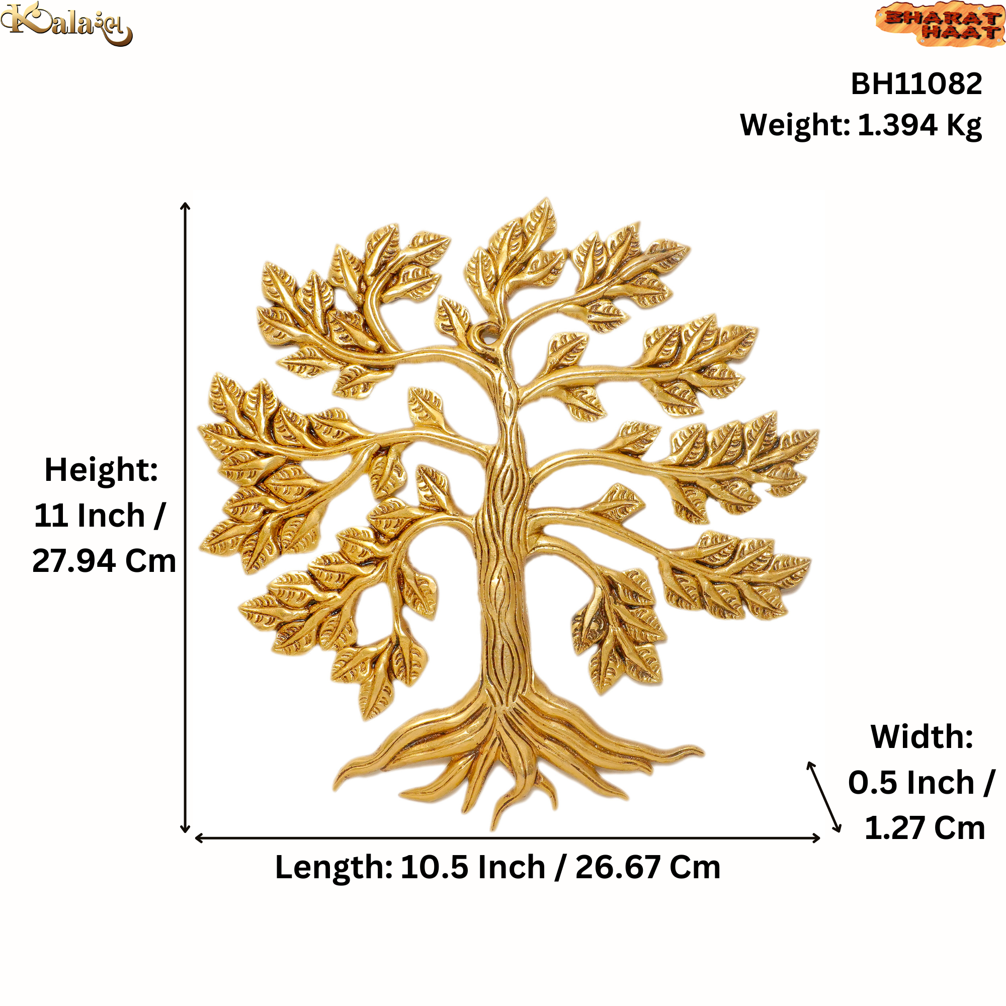 Brass Wall Hanging Tree – Handcrafted Decorative Sculpture for Home & Wall Décor (1.394 Kg, 11 Inch),