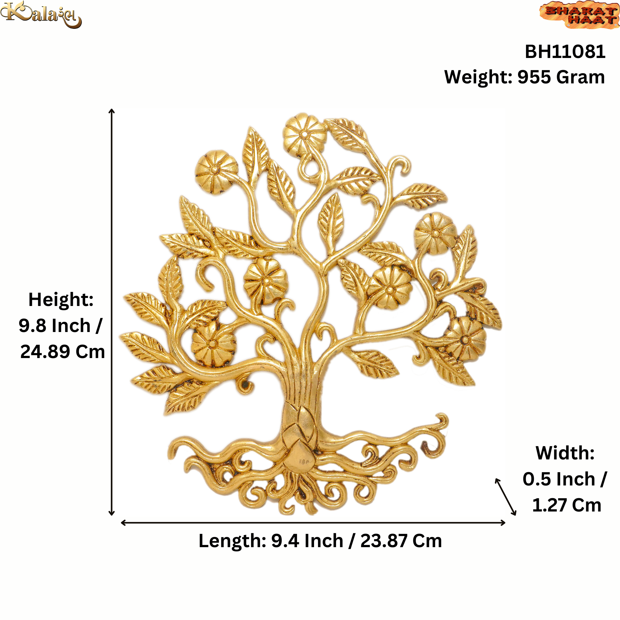 Brass Wall Hanging Tree – Handcrafted Decorative Sculpture for Home & Wall Décor (955g, 9.8 Inch),