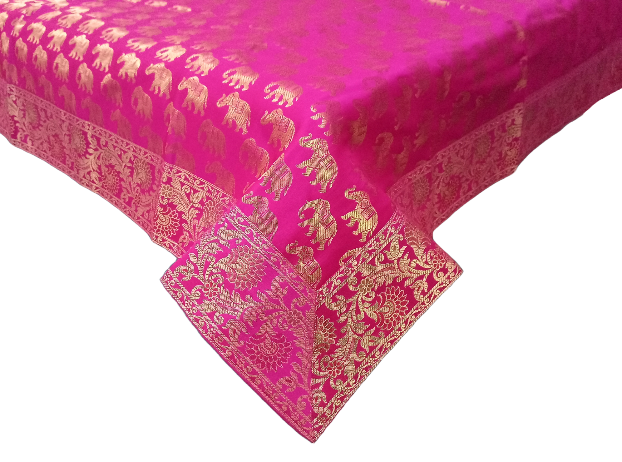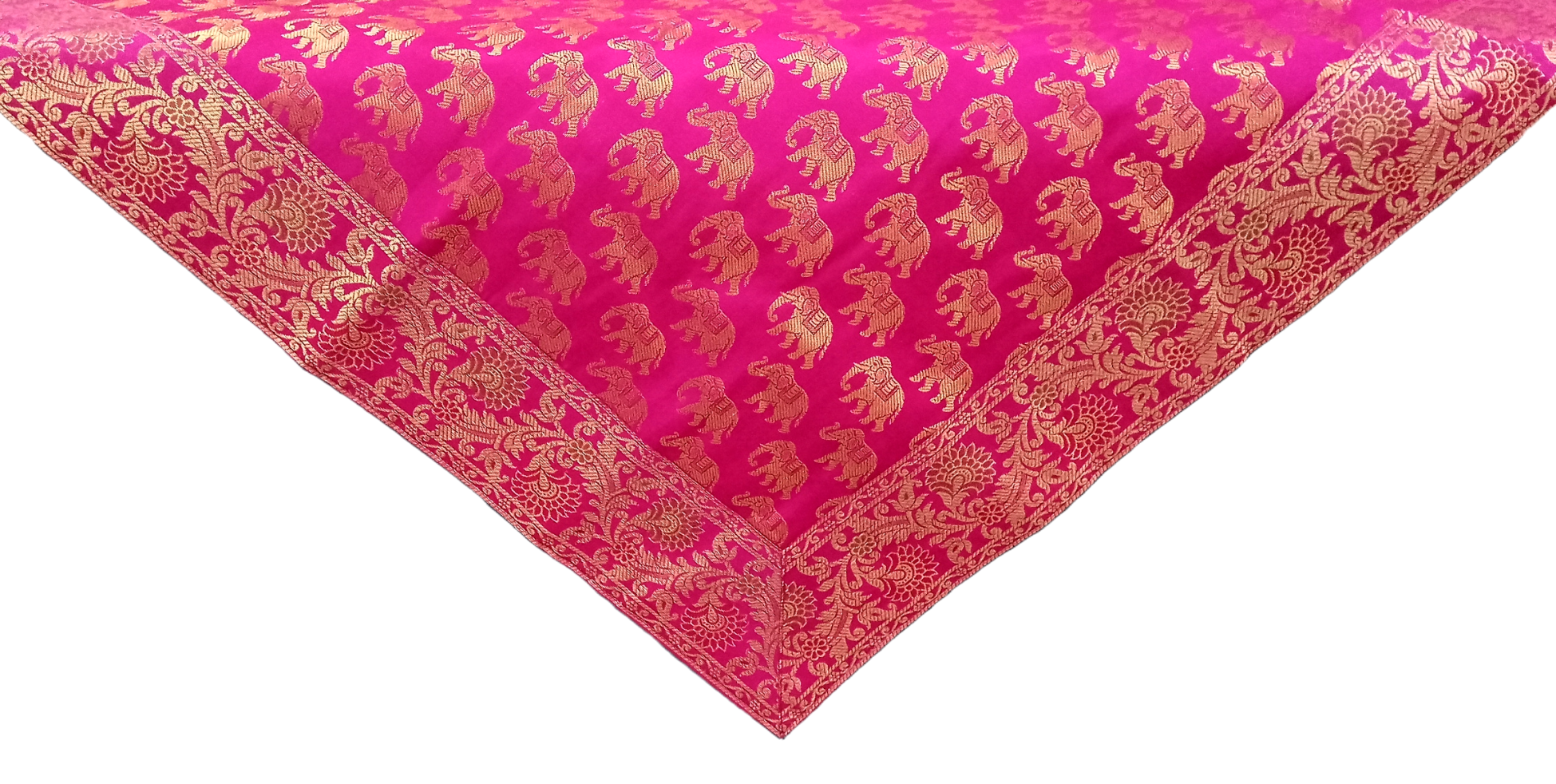 Brocade Silk Table Cloth Square 1 Meter x 1 Meter | Decorative Dining Table Mat with Golden Jacquard Weave | Elegant Home Decor for Festive & Special Occasions - Pink