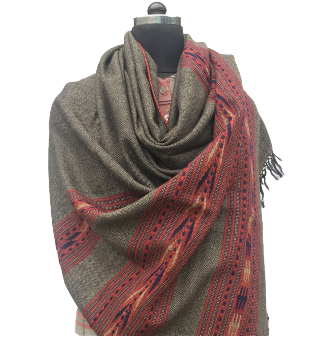 Introducing the exquisite brown color Kullu shawl, meticulously woven in wool with traditional Kullu teen patti design on both ends. The simplicity and elegance of its design make it a must-have for those who appreciate visually appealing outlooks. This elegant shawl is an ideal choice for a warm cover during any social occasion, particularly during winter.