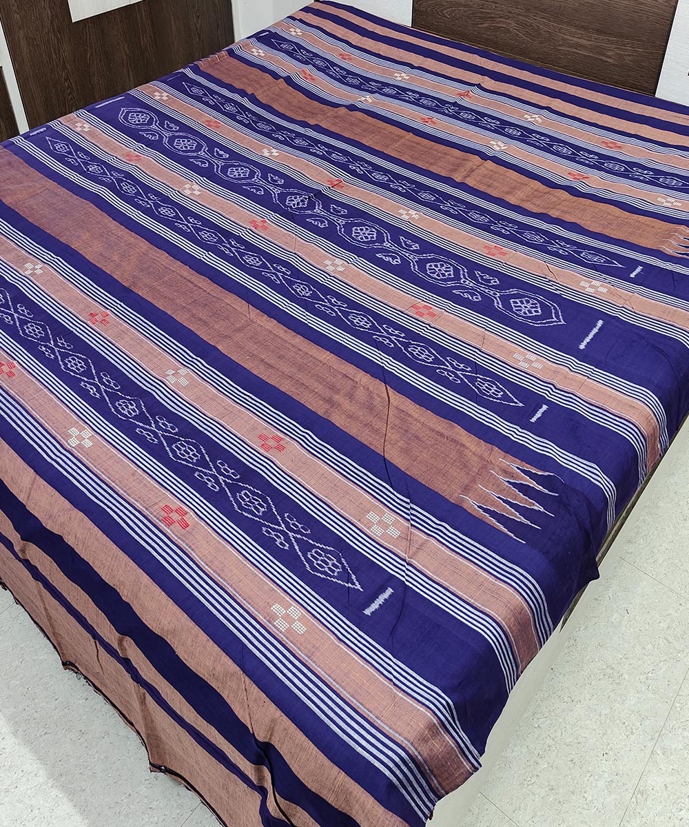 Brown Sambalpuri Handwoven Cotton Double Bed Sheet SMCBED1285