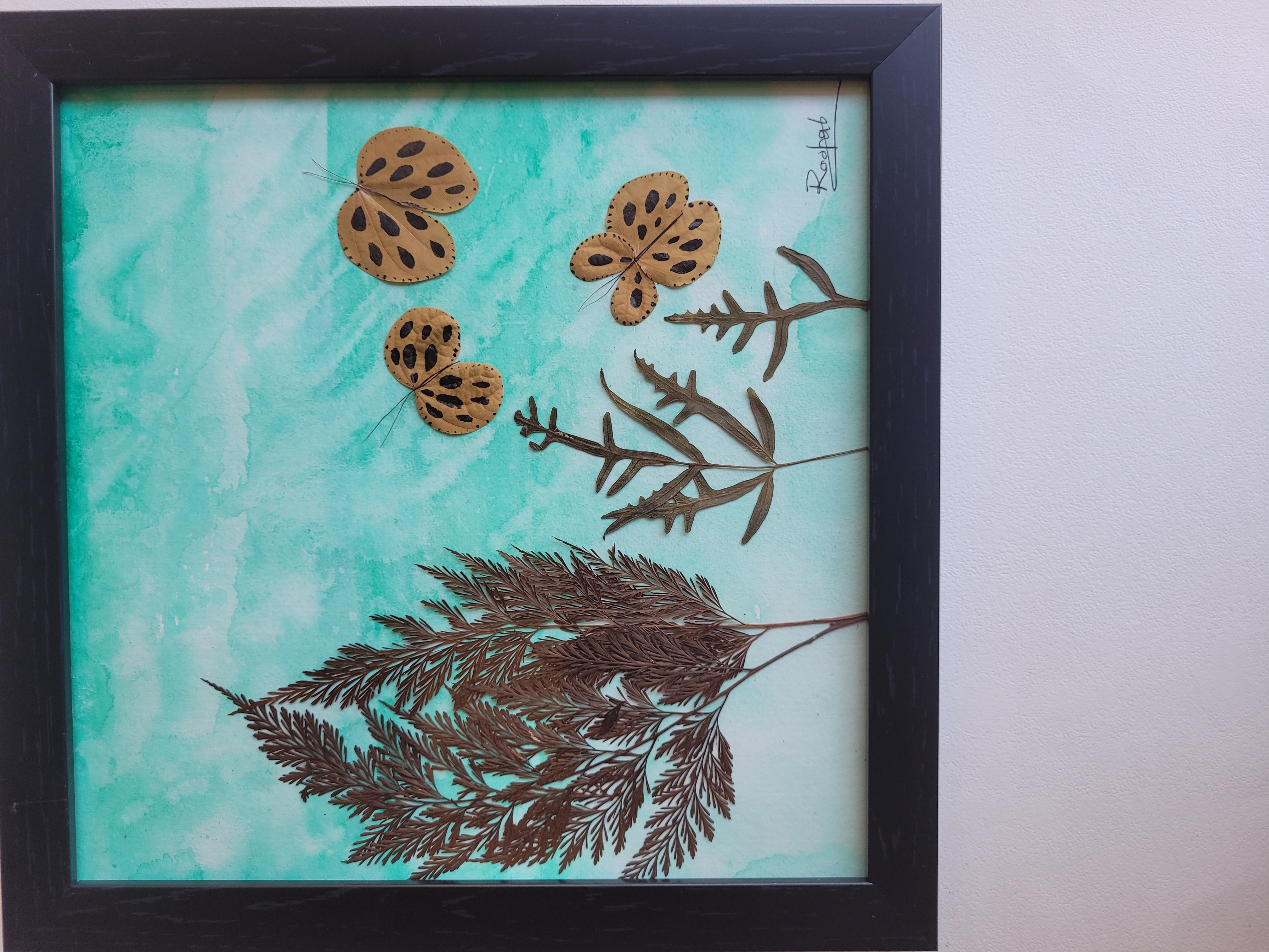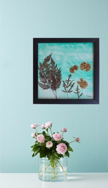 | Material | Paper, water colours, dry leaves, acrylic painting, frame |