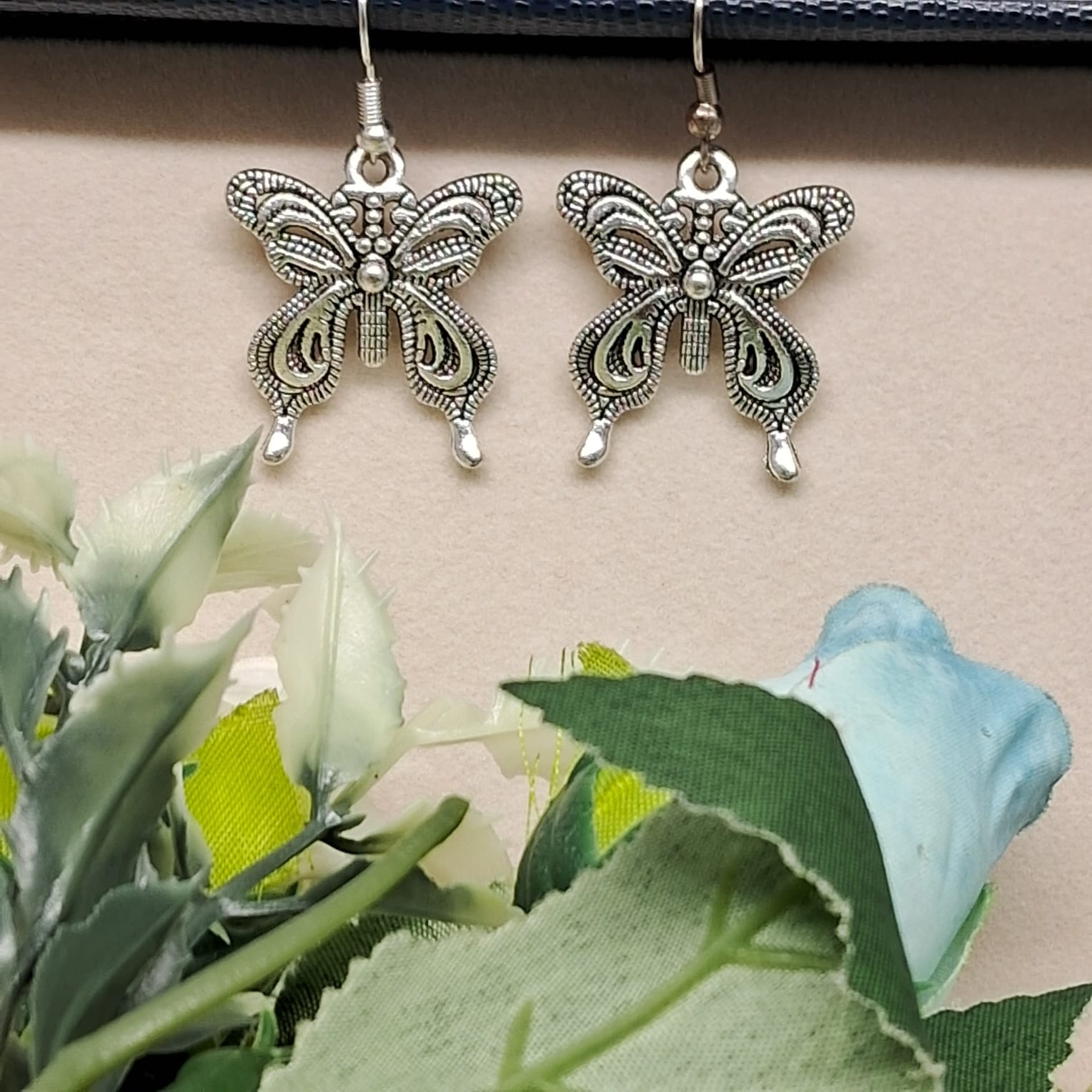 - Antique silver‑tone filigree butterfly motif for delicate, vintage appeal