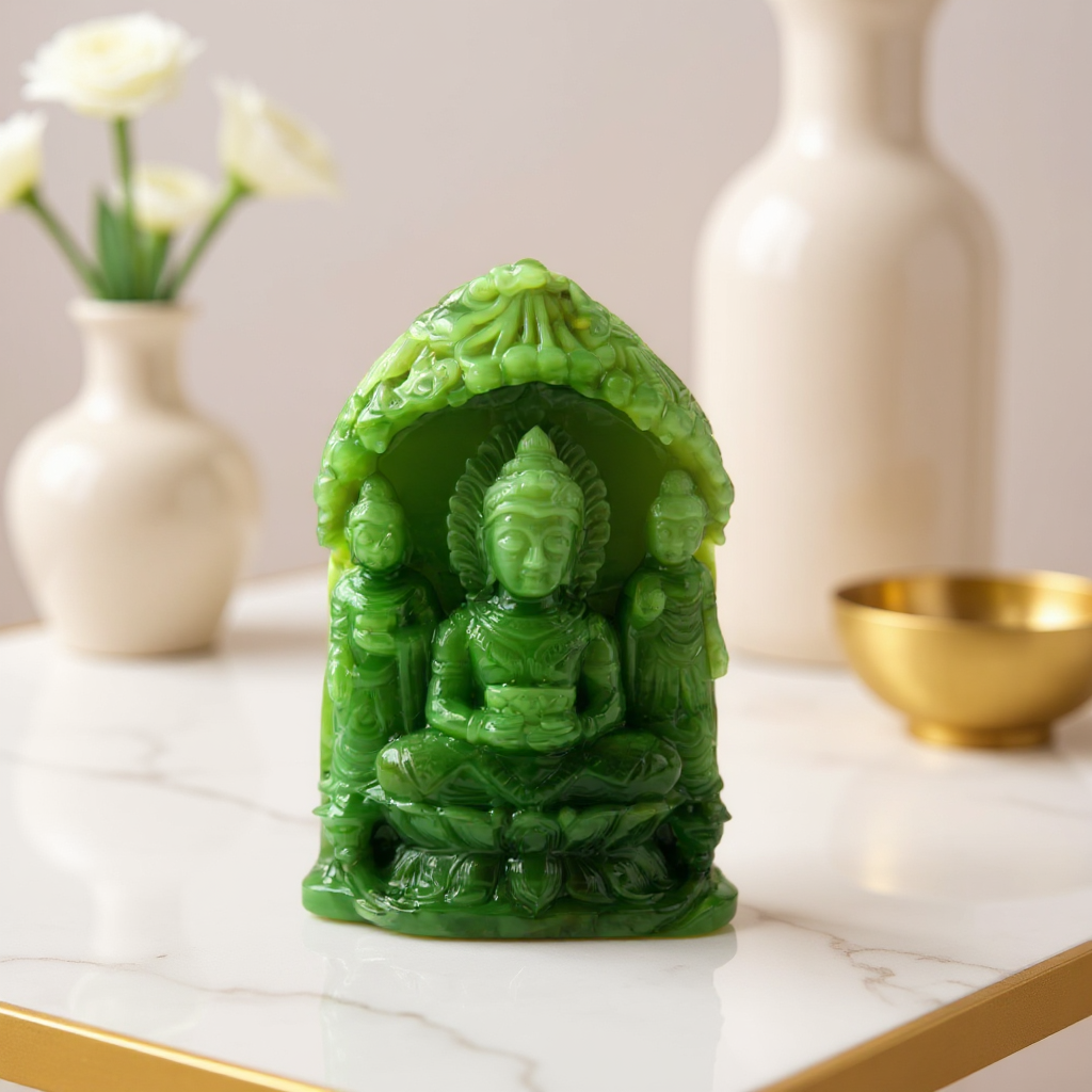 Discover the serenity of the Nephrite Jade Lord Buddha Statue, meticulously crafted in Rajasthan. This gemstone handicraft captures the essence of peace and enlightenment, making it a perfect addition to any home seeking harmony and spiritual balance.