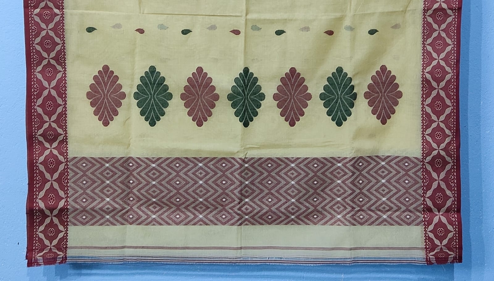 Embrace the simple luxury of the Bengal handloom cotton Tangail cream saree. It is an investment in heritage, comfort and timeless style. This is a saree that will not just adorn you, but connect you to the enduring legacy of Bengal's weaving artistry. Wear it everywhere, and carry the story of the loom with you.