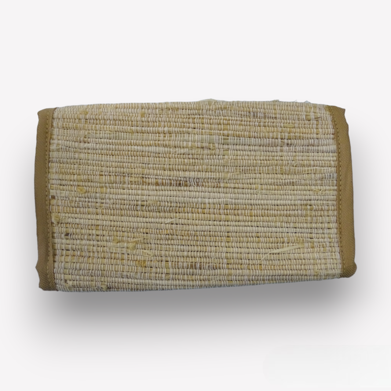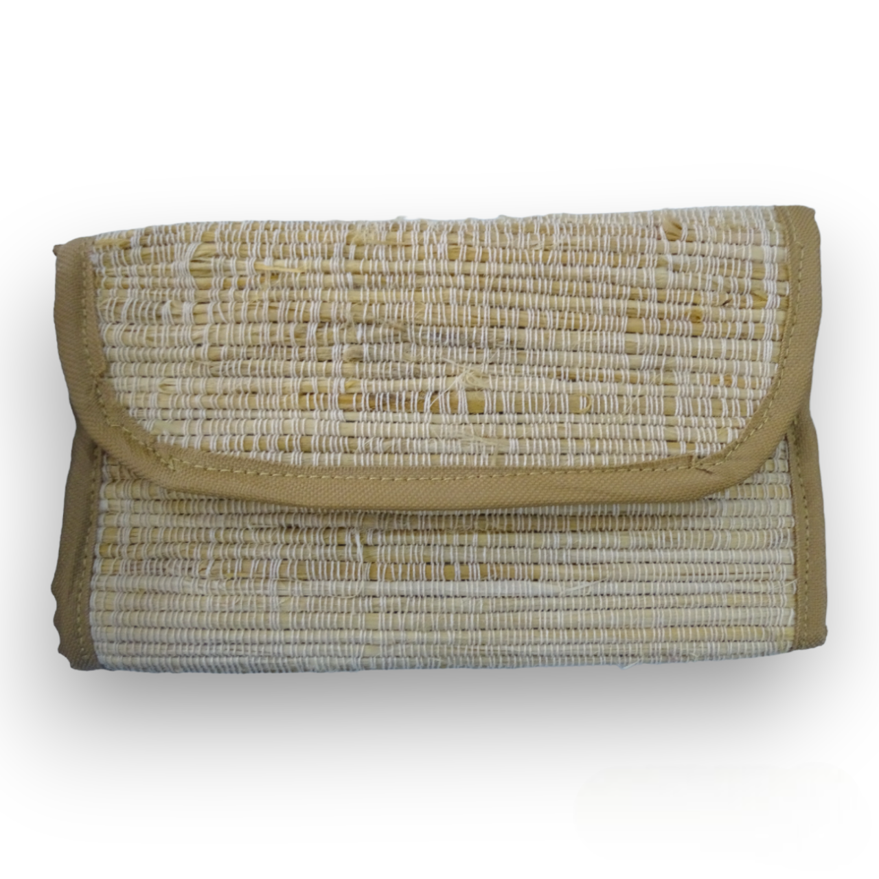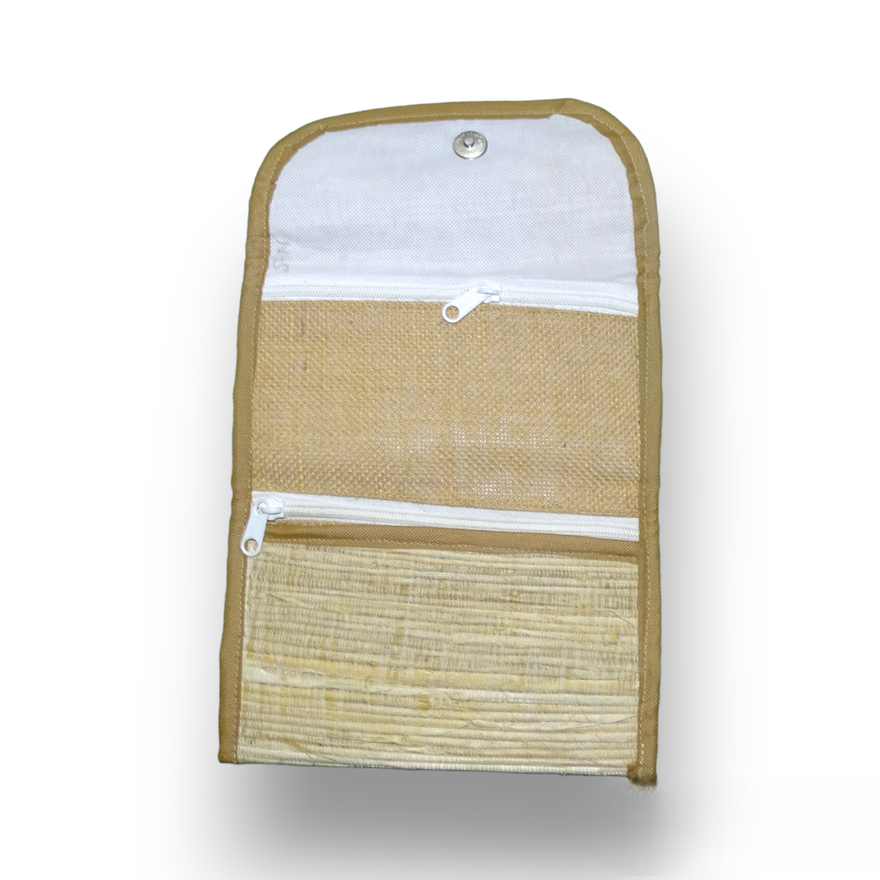 A stylish hand purse for women made of pure Bhimal & Jute fibre which looks amazing, It has cotton lamination from the inside and two zippered pockets which can be used to keep coins and other micro essentials and one pocket to keep cards or mobile phone safely. It is highly durable in nature because of the Jute fabric, As Jute is super strong in nature it increases the durability of the product. This product is totally eco-friendly and long-lasting. It is Biodegradable and also can be recycled.