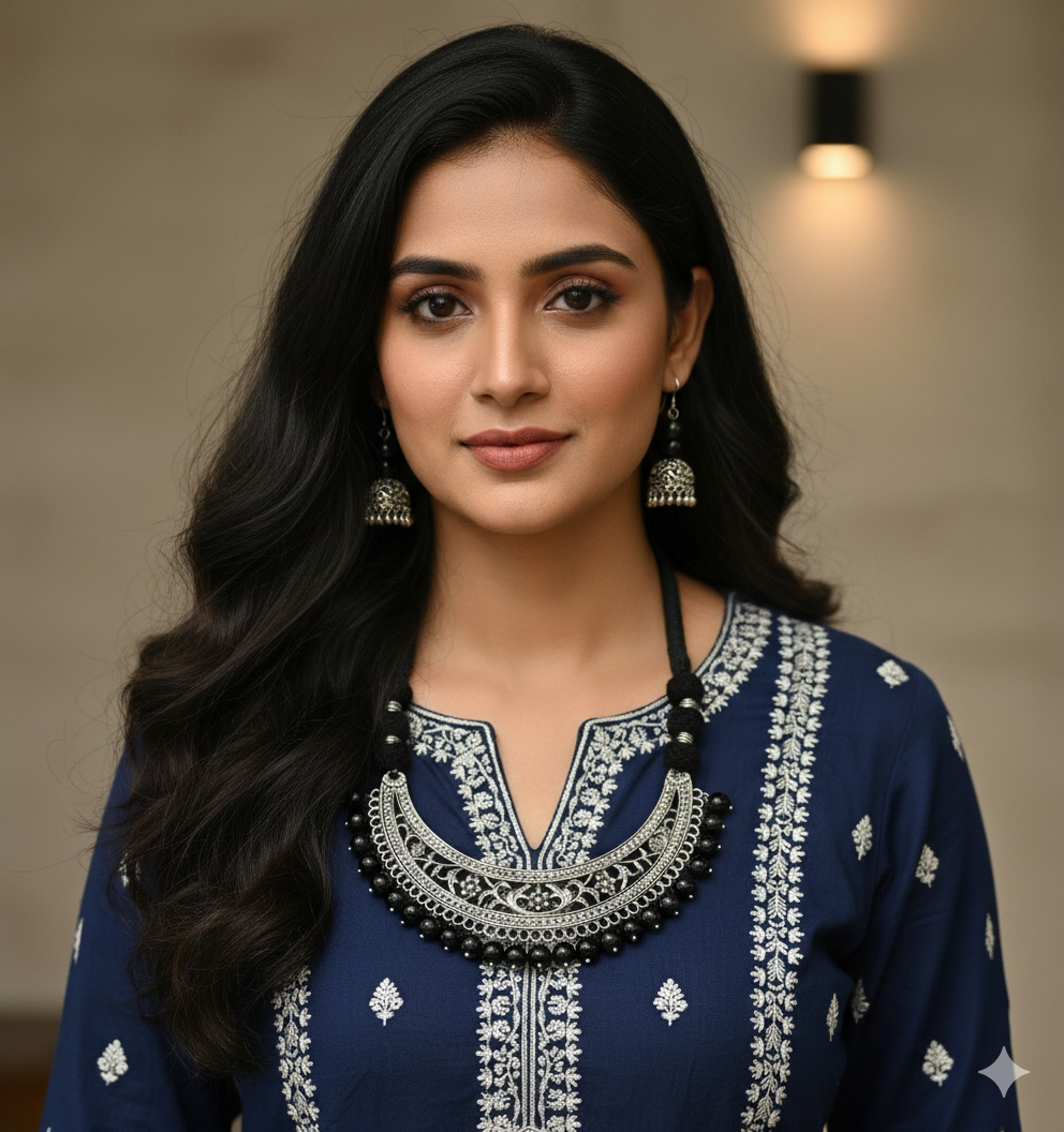 - Adjustable black cotton dori, allowing you to wear it as a choker or necklace
